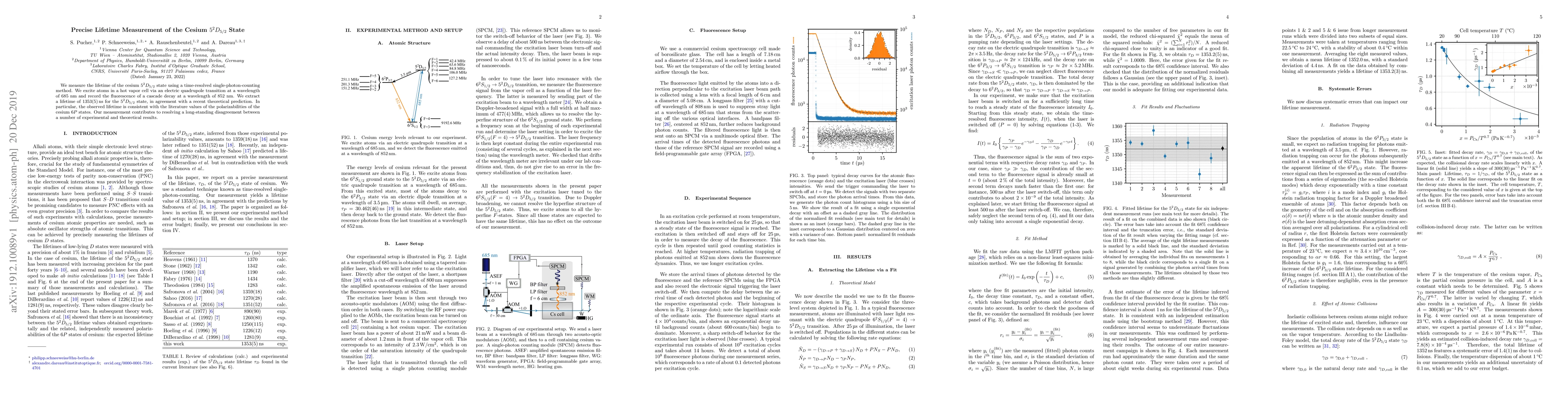 The paper presents a precise measurement of the cesium 5^2D_{5/2} state's lifetime, 1353(5) ns, using a time-resolved single-photon-counting method. This agrees with theoretical predictions and helps resolve discrepancies in literature values of cesium 6P states' polarizabilities.