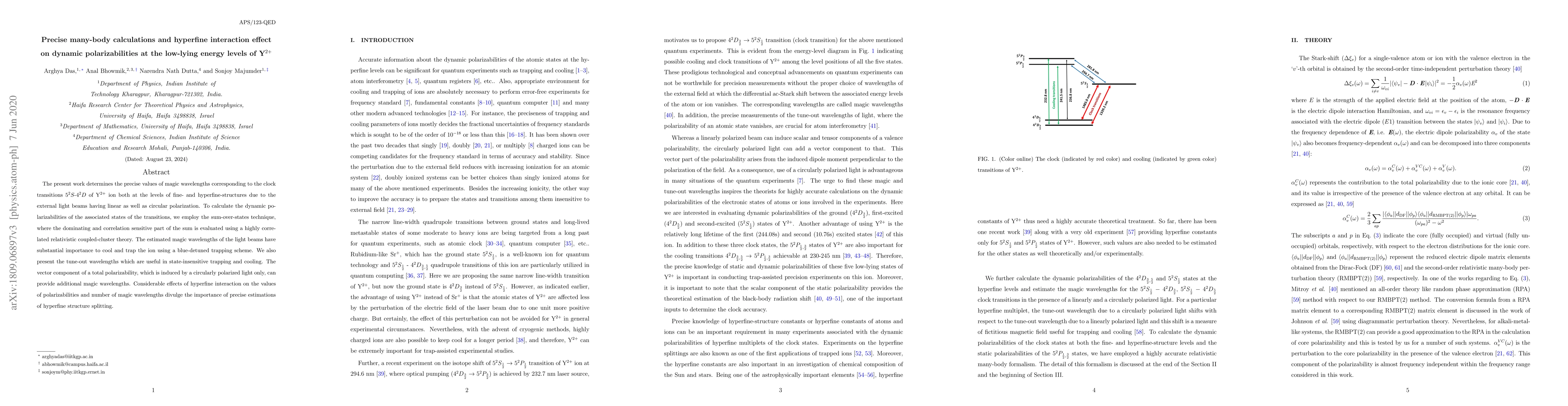 This paper calculates precise magic wavelengths for a Y^2+ ion using linear and circular polarization, highlighting the importance of hyperfine interaction on polarizabilities and trapability.