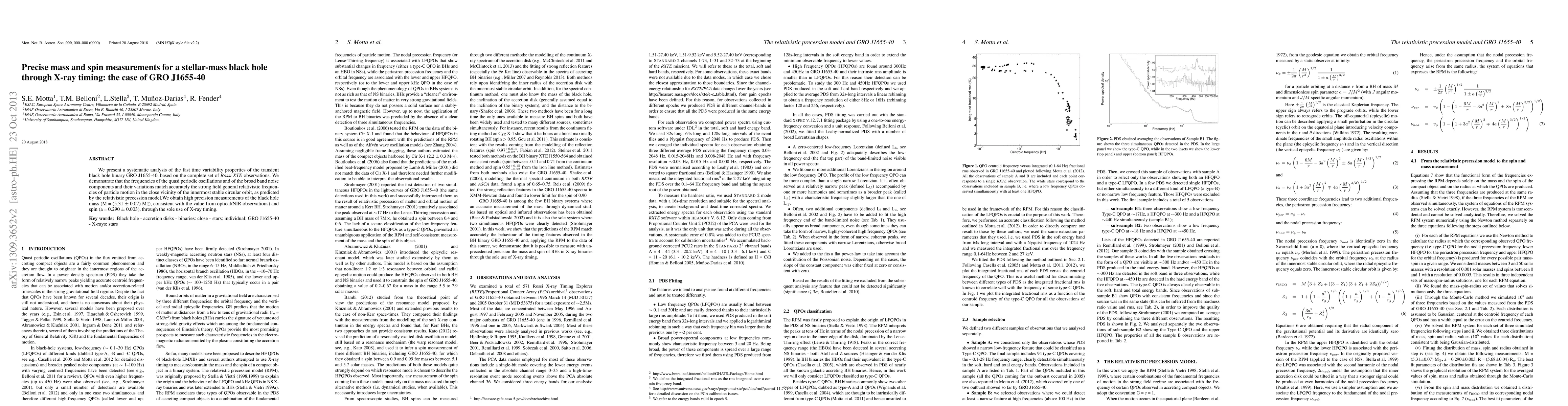 We present a systematic analysis of the fast time variability properties of the transient black hole binary GRO J1655-40, based on the complete set of RossiXTE observations. We demonstrate that the frequencies of the quasi-periodic oscillations and of the broad band noise components and their variations match accurately the strong field general relativistic frequencies of particle motion in the close vicinity of the innermost stable circular orbit, as predicted by the relativistic precession model. We obtain high precision measurements of the black hole mass (M = (5.31 +/- 0.07) M solar masses, consistent with the value from optical/NIR observations) and spin (a/M = 0.290 +/- 0.003), through the sole use of X-ray timing.