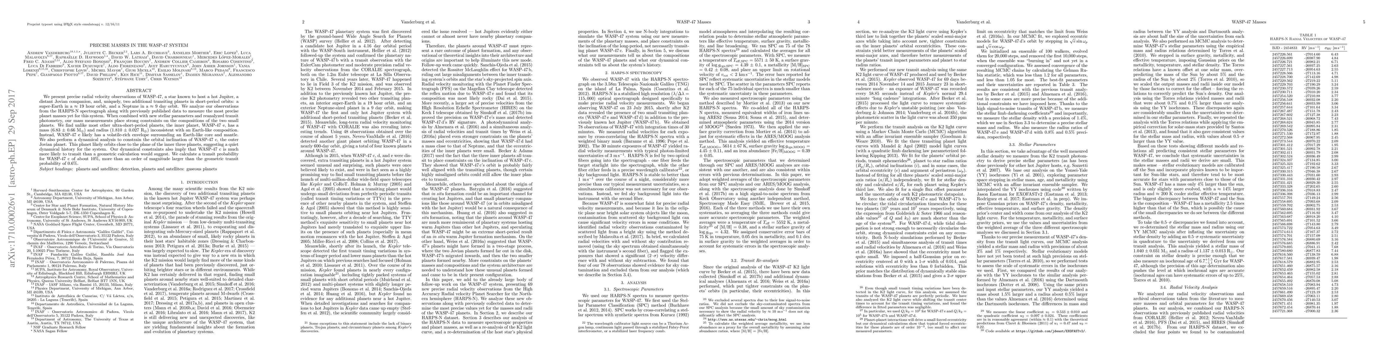 This study uses precise radial velocity data from the HARPS-N spectrograph to determine the most accurate masses for the planets in the WASP-47 system, revealing that the inner super-Earth, WASP-47 e, likely has a volatile-rich envelope rather than an Earth-like composition. The analysis also suggests that the outer Jovian planet, WASP-47 c, has a high transit probability of about 10%.