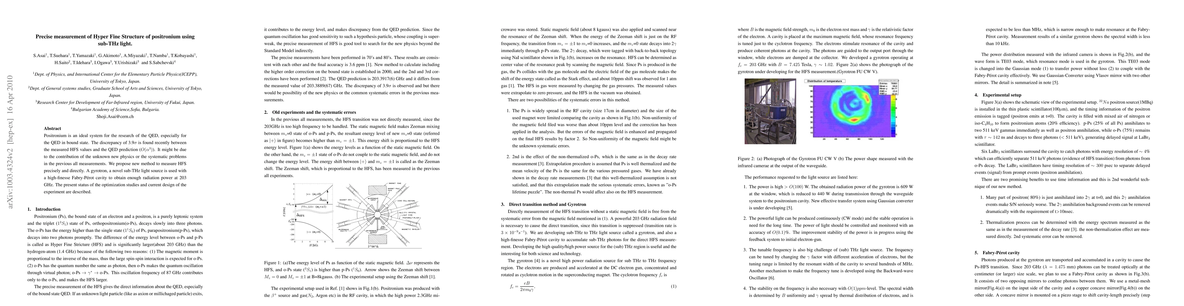 Positronium is an ideal system for the research of the QED, especially for the QED in bound state. The discrepancy of 3.9\sigma is found recently between the measured HFS values and the QED prediction ($O(\alpha^3)$). It might be due to the contribution of the unknown new physics or the systematic problems in the previous all measurements. We propose new method to measure HFS precisely and directly. A gyrotron, a novel sub-THz light source is used with a high-finesse Fabry-P\'erot cavity to obtain enough radiation power at 203 GHz. The present status of the optimization studies and current design of the experiment are described.