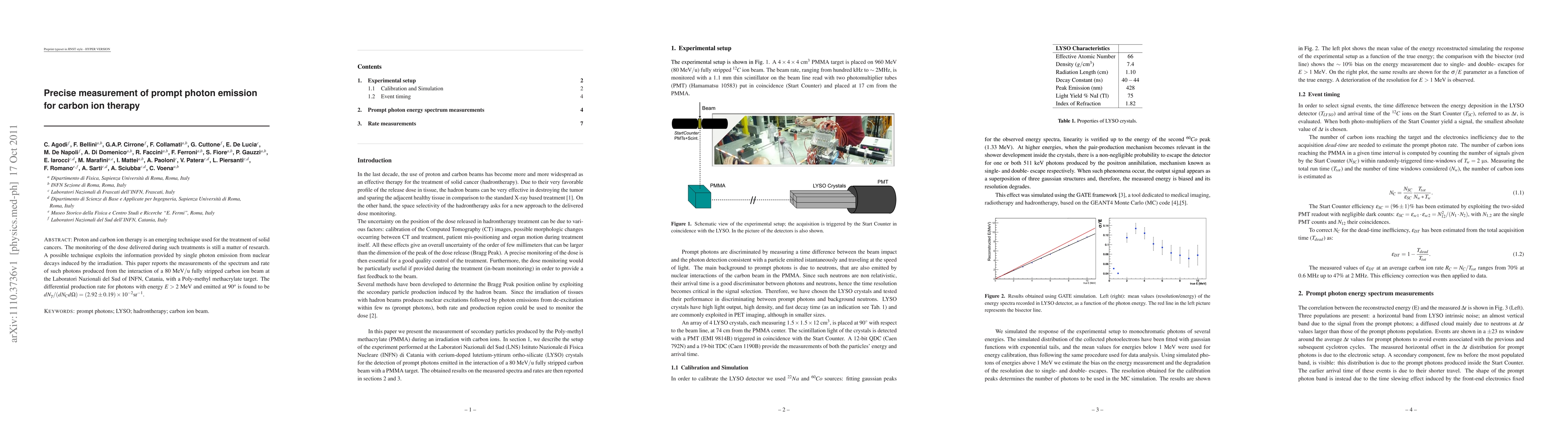 This paper reports precise measurements of prompt photon emission from carbon ion therapy, specifically the spectrum and rate of photons produced during the interaction of a 80 MeV/u carbon ion beam with a Poly-methyl methacrylate target. The differential production rate for photons with energy greater than 2 MeV emitted at 90 degrees is determined to be $(2.92\pm 0.19)\times 10^{-2}$ sr$^{-1}$.