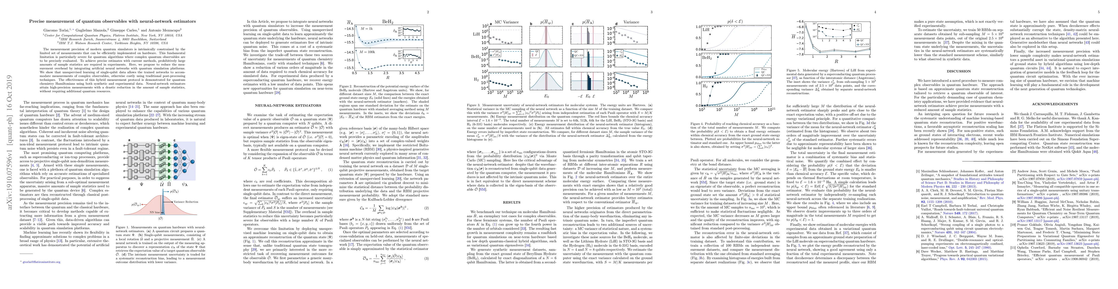The measurement precision of modern quantum simulators is intrinsically constrained by the limited set of measurements that can be efficiently implemented on hardware. This fundamental limitation is particularly severe for quantum algorithms where complex quantum observables are to be precisely evaluated. To achieve precise estimates with current methods, prohibitively large amounts of sample statistics are required in experiments. Here, we propose to reduce the measurement overhead by integrating artificial neural networks with quantum simulation platforms. We show that unsupervised learning of single-qubit data allows the trained networks to accommodate measurements of complex observables, otherwise costly using traditional post-processing techniques. The effectiveness of this hybrid measurement protocol is demonstrated for quantum chemistry Hamiltonians using both synthetic and experimental data. Neural-network estimators attain high-precision measurements with a drastic reduction in the amount of sample statistics, without requiring additional quantum resources.