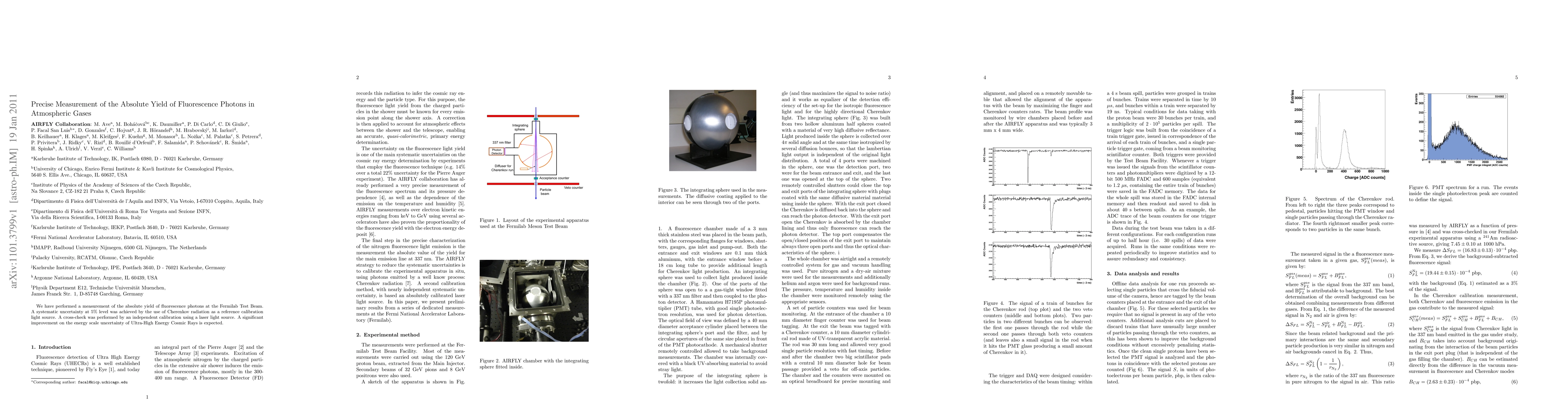 We have performed a measurement of the absolute yield of fluorescence photons at the Fermilab Test Beam. A systematic uncertainty at 5% level was achieved by the use of Cherenkov radiation as a reference calibration light source. A cross-check was performed by an independent calibration using a laser light source. A significant improvement on the energy scale uncertainty of Ultra-High Energy Cosmic Rays is expected.