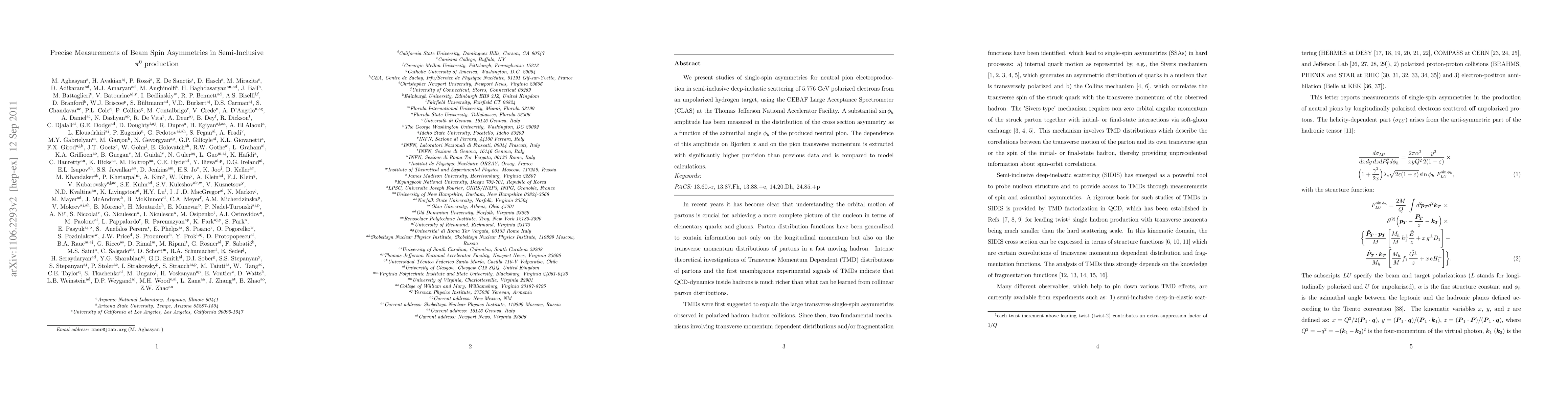 This study measures single-spin asymmetries in neutral pion electroproduction using polarized electrons and an unpolarized hydrogen target, revealing a significant $\sin \phi_h$ amplitude in the azimuthal angle distribution. The findings provide higher precision data on the dependence on Bjorken $x$ and pion transverse momentum, compared to previous models.