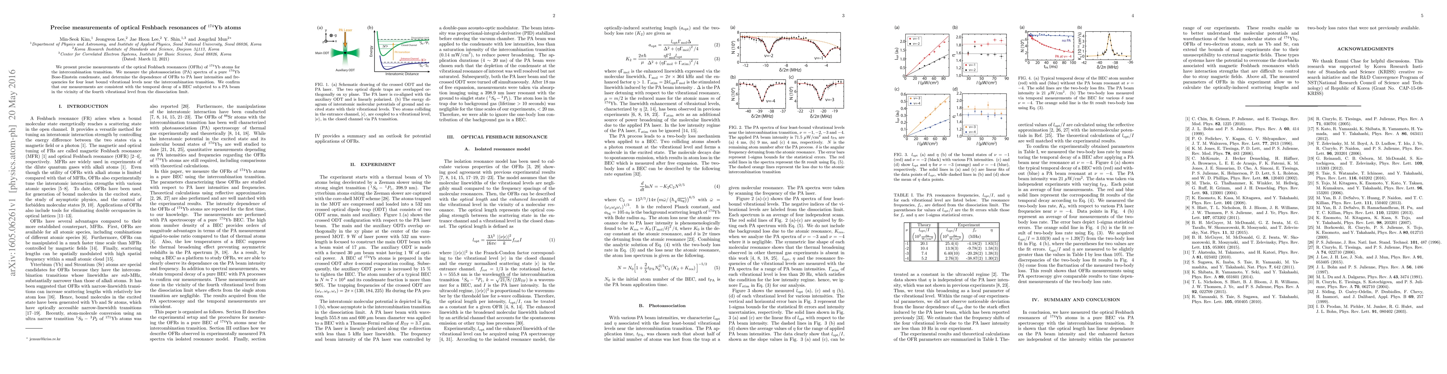 We present precise measurements of the optical Feshbach resonances (OFRs) of $^{174}$Yb atoms for the intercombination transition. We measure the photoassociation (PA) spectra of a pure $^{174}$Yb Bose-Einstein condensate, and determine the dependence of OFRs to PA laser intensities and frequencies for four least bound vibrational levels near the intercombination transition. We confirm that our measurements are consistent with the temporal decay of a BEC subjected to a PA beam in the vicinity of the fourth vibrational level from the dissociation limit.