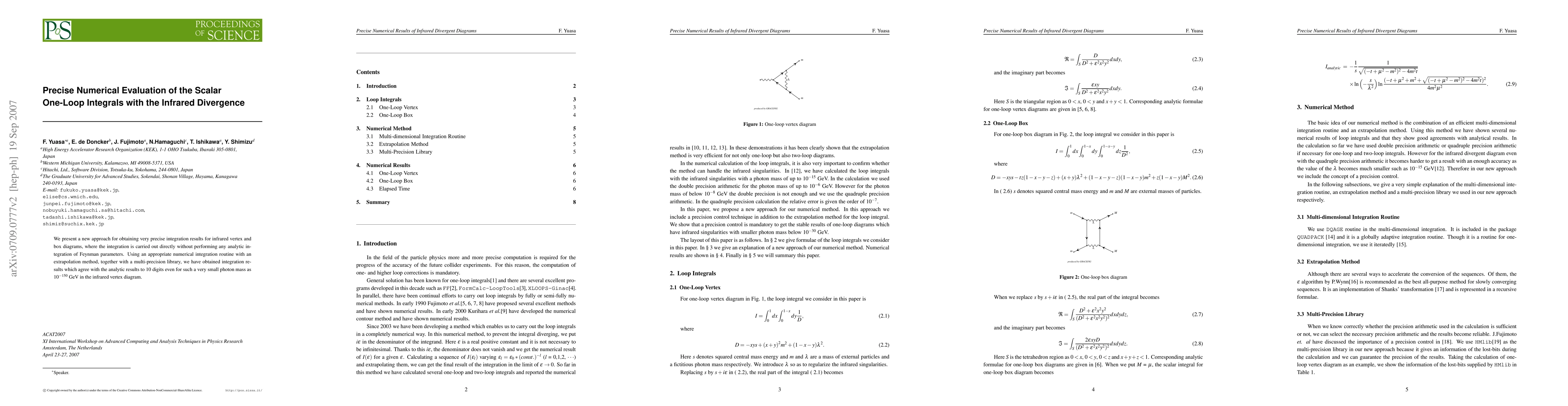 This paper introduces a novel numerical method for calculating scalar one-loop integrals, specifically addressing infrared divergences in vertex and box diagrams, achieving results that match analytic calculations to 10 digits, even at extremely small photon masses. The method employs direct numerical integration and extrapolation techniques without relying on Feynman parameters.
