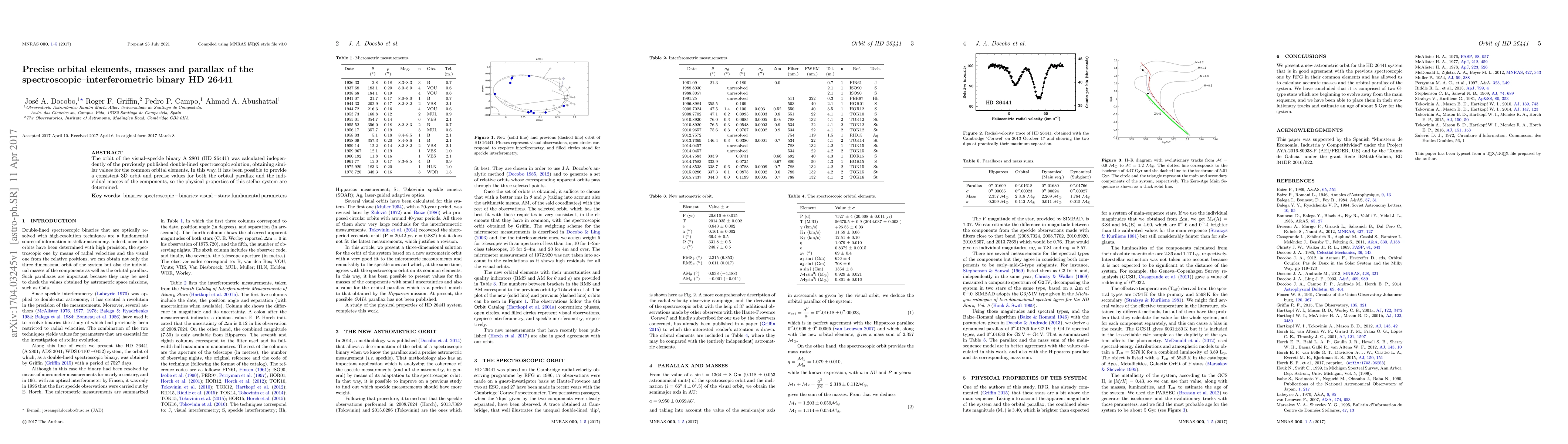 The research independently calculated the orbit of visual-speckle binary A 2801 (HD 26441), aligning with previous spectroscopic findings. It determined precise 3D orbit, orbital parallax, and individual masses of components, establishing the physical properties of this stellar system.