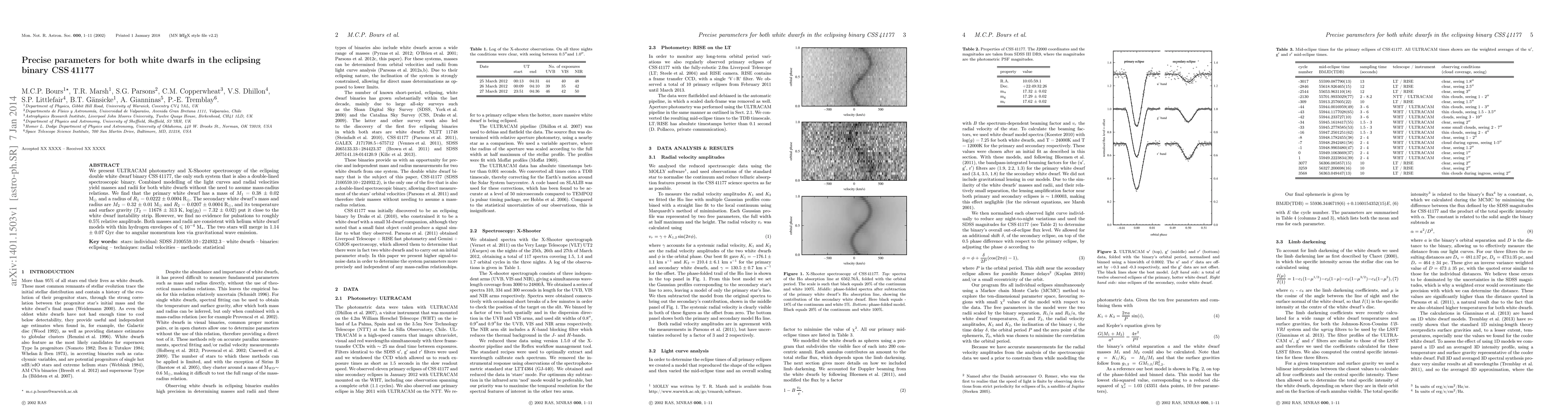 We present ULTRACAM photometry and X-Shooter spectroscopy of the eclipsing double white dwarf binary CSS 41177, the only such system that is also a double-lined spectroscopic binary. Combined modelling of the light curves and radial velocities yield masses and radii for both white dwarfs without the need to assume mass-radius relations. We find that the primary white dwarf has a mass of M1 = 0.38(2) Msun and a radius of R1 = 0.0222(4) Rsun. The secondary white dwarf's mass and radius are M2 = 0.32(1) Msun and R2 = 0.0207(4) Rsun, and its temperature and surface gravity (T2 = 11678(313) K, log(g2) = 7.32(2)) put it close to the white dwarf instability strip. However, we find no evidence for pulsations to roughly 0.5% relative amplitude. Both masses and radii are consistent with helium white dwarf models with thin hydrogen envelopes of 0.0001 Mstar. The two stars will merge in 1.14 Gyr due to angular momentum loss via gravitational wave emission.