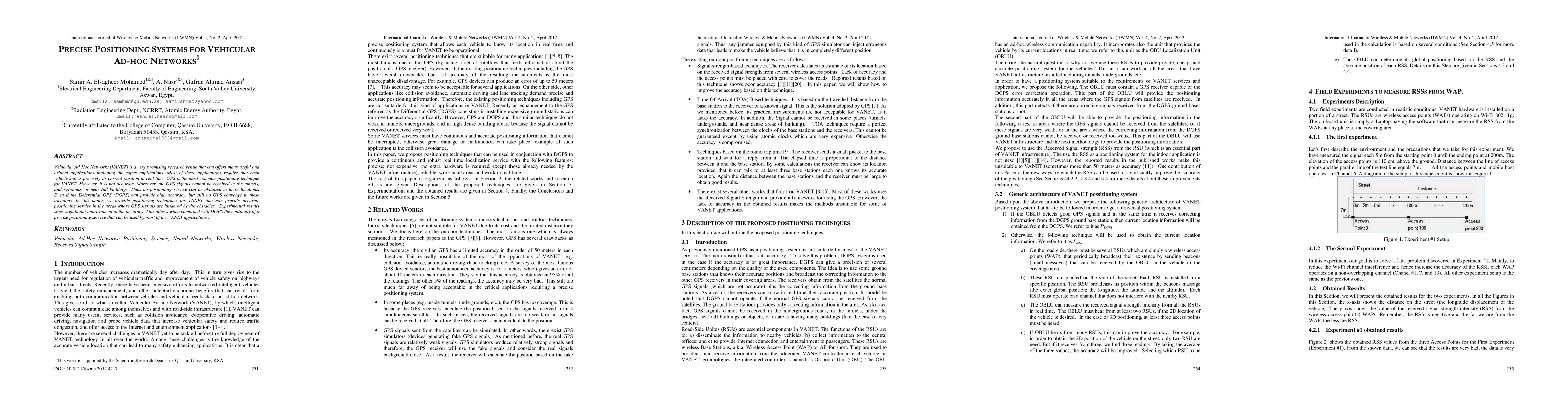 This paper proposes advanced positioning techniques for Vehicular Ad Hoc Networks (VANET) to provide accurate real-time positioning where GPS signals fail, such as in tunnels or near tall buildings. The experimental results demonstrate significant accuracy improvements, enhancing the continuity of precise positioning services when combined with Differential GPS (DGPS).