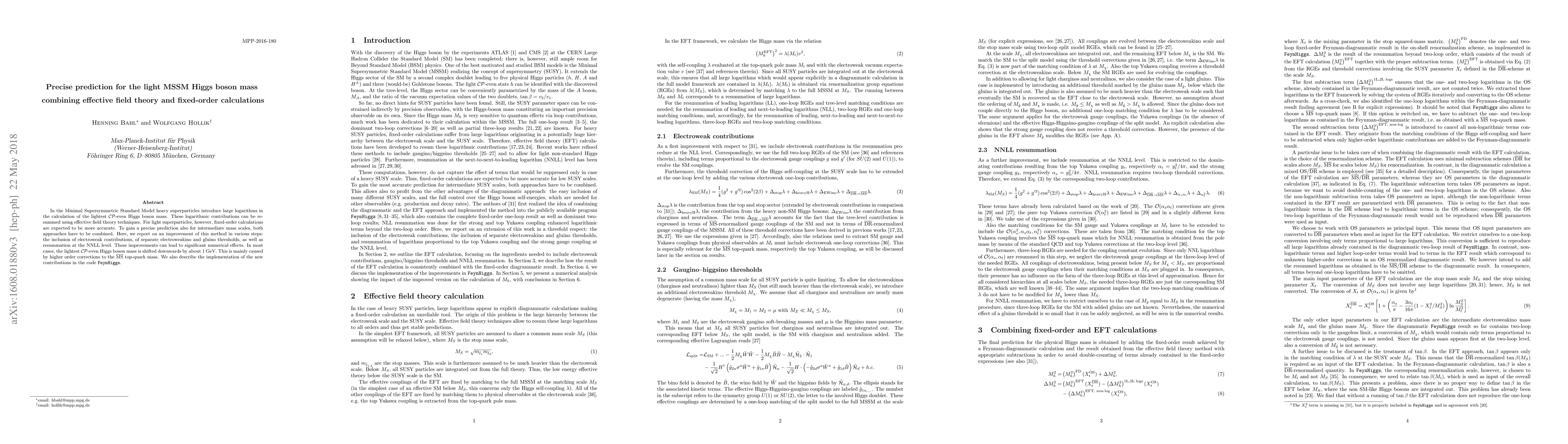 Researchers improved a method to predict the mass of the lightest Higgs boson in supersymmetric models by combining effective field theory and fixed-order calculations, leading to predictions that shift the boson's mass down by about 1 GeV.