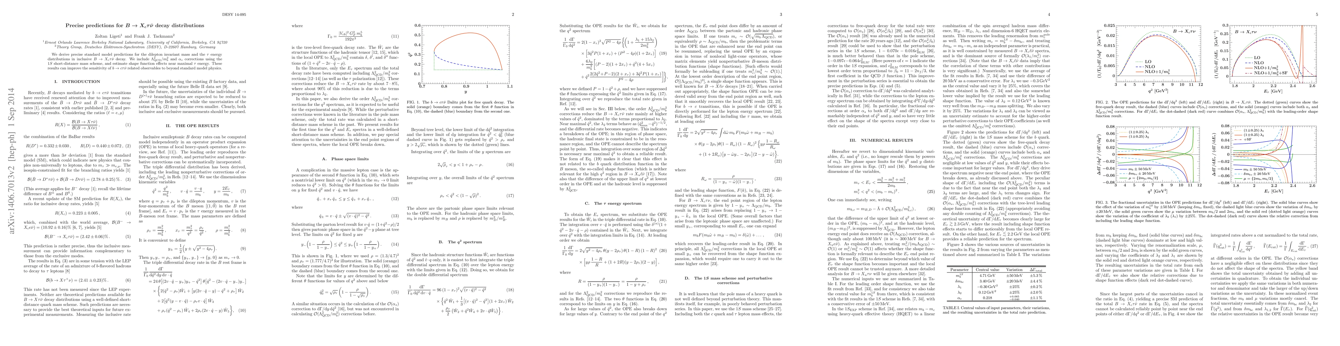 We derive precise standard model predictions for the dilepton invariant mass and the tau energy distributions in inclusive B -> Xc tau nu decay. We include Lambda_QCD^2/m_b^2 and alpha_s corrections using the 1S short-distance mass scheme, and estimate shape function effects near maximal tau energy. These results can improve the sensitivity of b -> c tau nu related observables to beyond standard model physics.