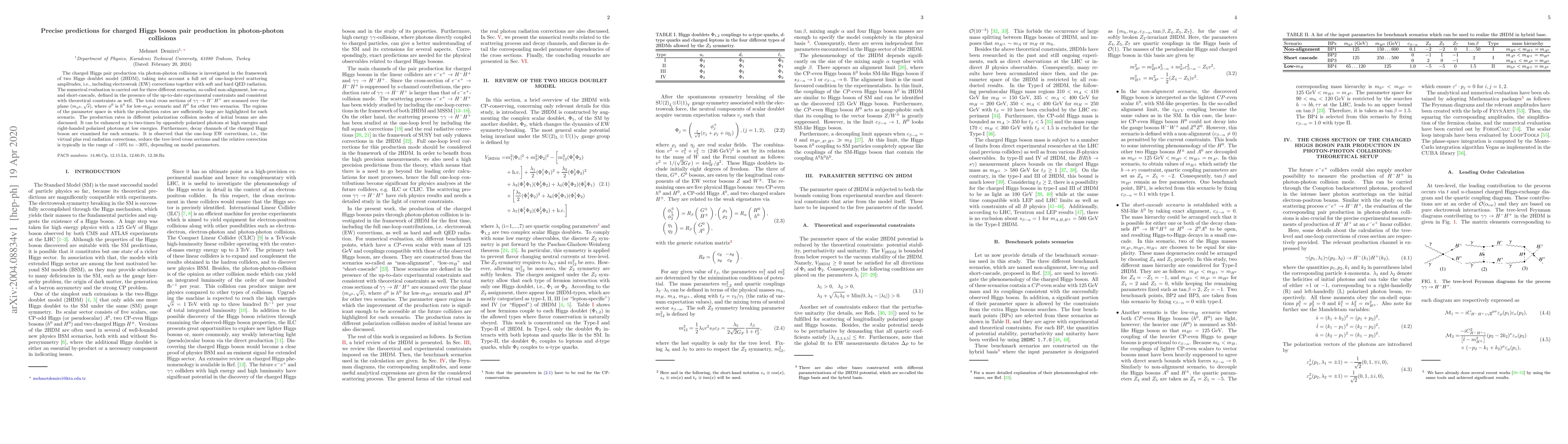 This paper investigates the charged Higgs pair production in photon-photon collisions within the two Higgs doublet model, considering one-loop-level scattering amplitudes and various polarization modes. The study highlights regions where production rates are significant and notes that one-loop electroweak corrections can reduce the cross sections by up to 30%.