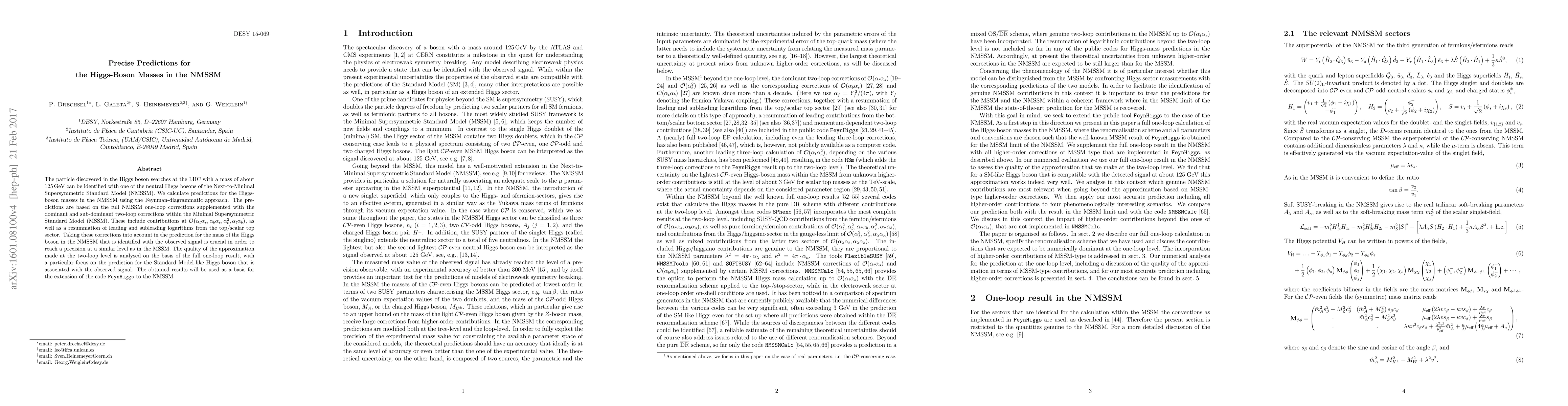 This paper presents precise predictions for Higgs-boson masses in the NMSSM using a Feynman-diagrammatic approach, incorporating full one-loop and dominant two-loop corrections from the MSSM. The analysis focuses on the accuracy of these predictions for the Standard Model-like Higgs boson observed at the LHC.