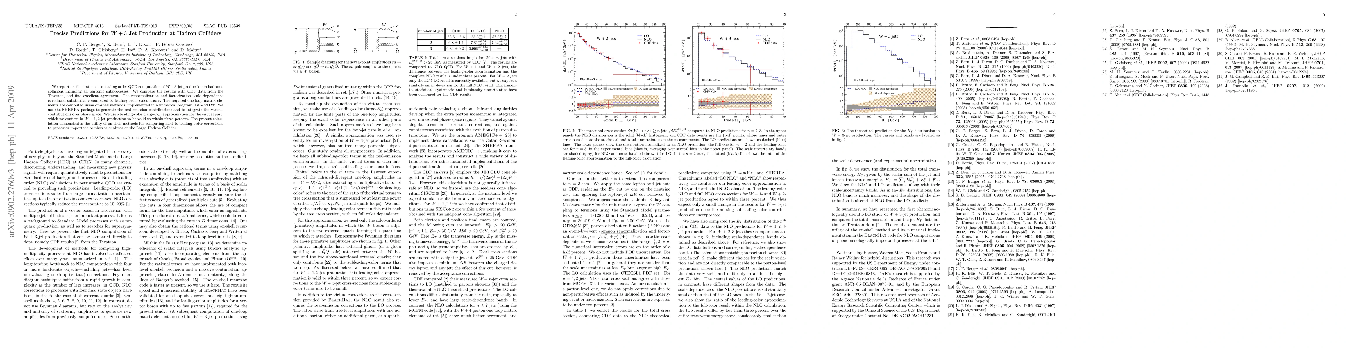 This paper presents the first next-to-leading order QCD computation for W + 3-jet production in hadron collisions, showing excellent agreement with CDF data. The study significantly reduces scale dependence and demonstrates the effectiveness of on-shell methods for next-to-leading-order corrections in collider physics.