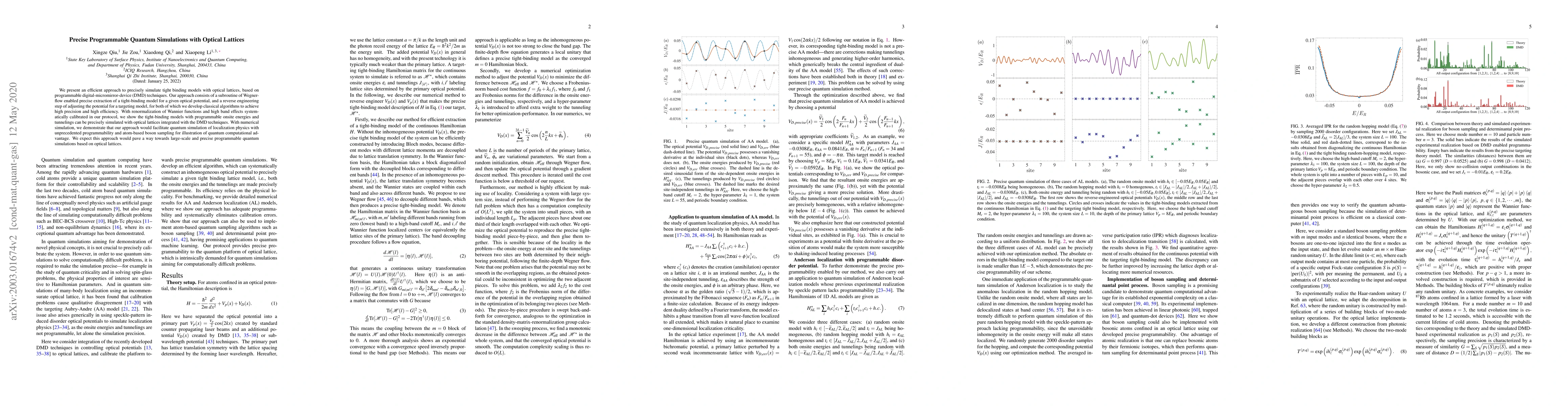 This paper presents a method for precise quantum simulations using optical lattices and digital-micromirror-device (DMD) techniques, enabling tight-binding model simulations with high precision and efficiency. The approach includes algorithms for extracting and adjusting optical potentials, demonstrating potential for quantum simulation of localization physics and quantum computational advantage.