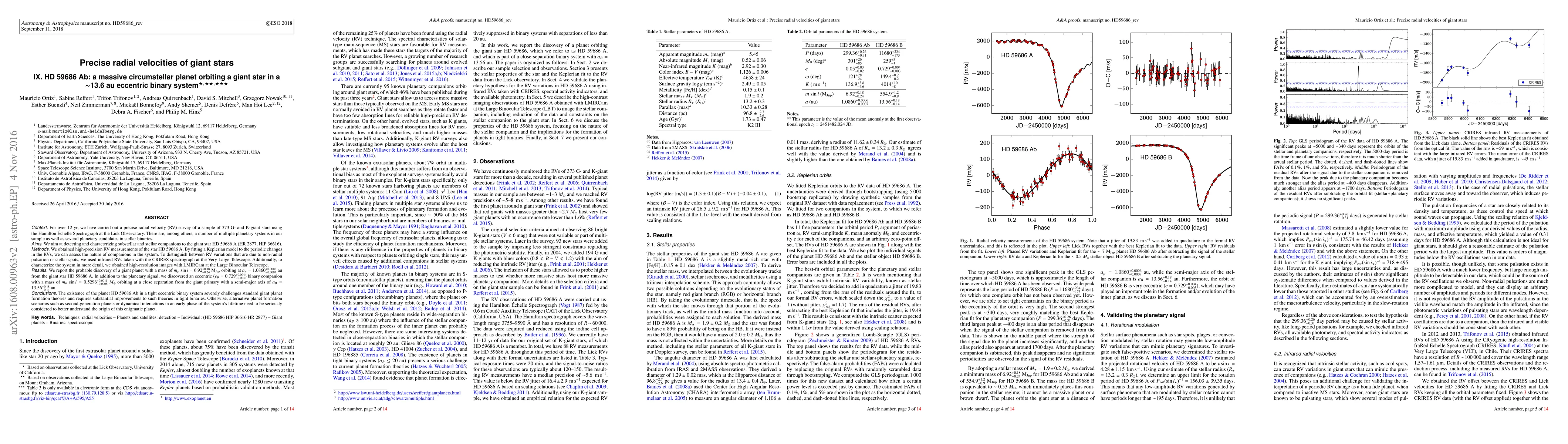 This study reports the discovery of a massive planet, HD 59686 Ab, orbiting the giant star HD 59686 A in a tight eccentric binary system. The planet's existence challenges current giant planet formation theories, necessitating alternative formation scenarios.