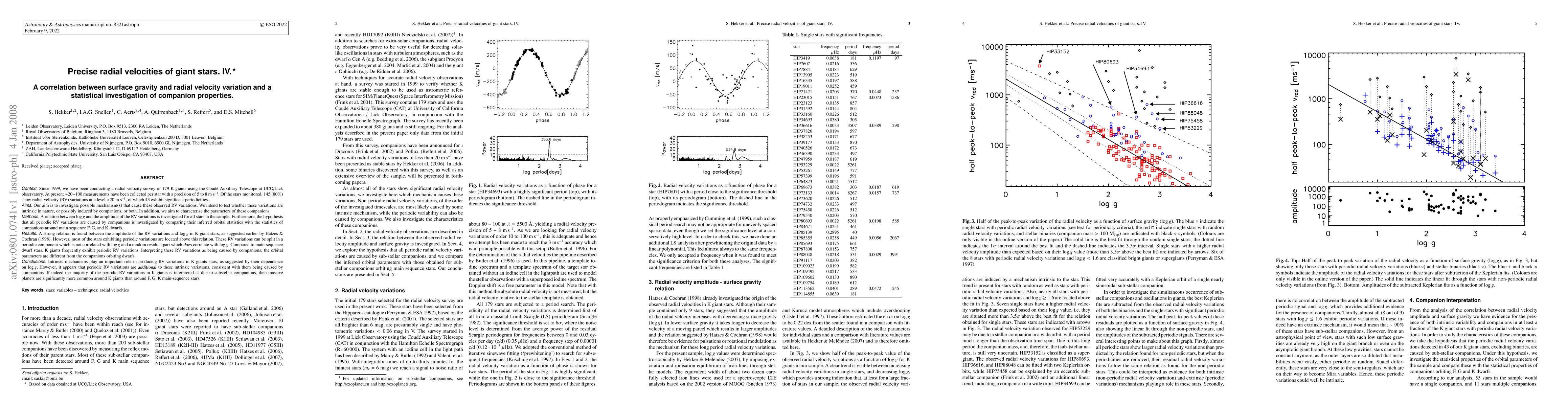 Since 1999, we have been conducting a radial velocity survey of 179 K giants using the CAT at UCO/Lick observatory. At present ~20-100 measurements have been collected per star with a precision of 5 to 8 m/s. Of the stars monitored, 145 (80%) show radial velocity (RV) variations at a level >20 m/s, of which 43 exhibit significant periodicities. Our aim is to investigate possible mechanism(s) that cause these observed RV variations. We intend to test whether these variations are intrinsic in nature, or possibly induced by companions, or both. In addition, we aim to characterise the parameters of these companions. A relation between log g and the amplitude of the RV variations is investigated for all stars in the sample. Furthermore, the hypothesis that all periodic RV variations are caused by companions is investigated by comparing their inferred orbital statistics with the statistics of companions around main sequence stars. A strong relation is found between the amplitude of the RV variations and log g in K giant stars, as suggested earlier by Hatzes & Cochran (1998). However, most of the stars exhibiting periodic variations are located above this relation. These RV variations can be split in a periodic component which is not correlated with log g and a random residual part which does correlate with log g. Compared to main-sequence stars, K giants frequently exhibit periodic RV variations. Interpreting these RV variations as being caused by companions, the orbital param eters are different from the companions orbiting dwarfs. Intrinsic mechanisms play an important role in producing RV variations in K giants stars, as suggested by their dependence on log g. However, it appears that periodic RV variations are additional to these intrinsic variations, consistent with them being caused by companions.