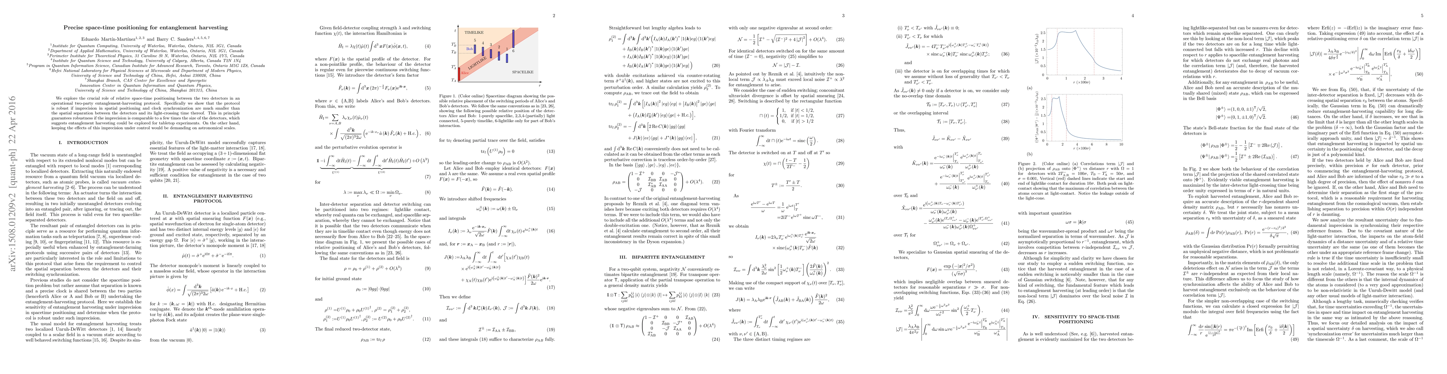 We explore the crucial role of relative space-time positioning between the two detectors in an operational two-party entanglement-harvesting protocol. Specifically we show that the protocol is robust if imprecision in spatial positioning and clock synchronization are much smaller than the spatial separation between the detectors and its light-crossing time thereof. This in principle guarantees robustness if the imprecision is comparable to a few times the size of the detectors, which suggests entanglement harvesting could be explored for tabletop experiments. On the other hand, keeping the effects of this imprecision under control would be demanding on astronomical scales.