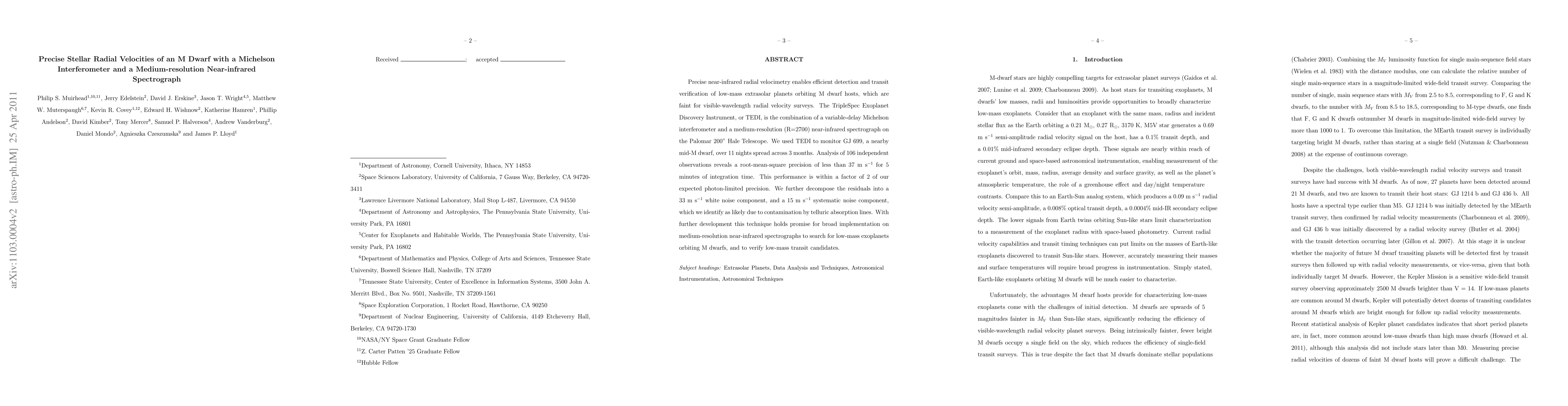 This study uses TEDI, a combination of a Michelson interferometer and a medium-resolution spectrograph, to achieve precise radial velocities for the M dwarf GJ 699, demonstrating a precision of less than 37 m/s. The technique shows promise for detecting and verifying low-mass exoplanets around M dwarfs.