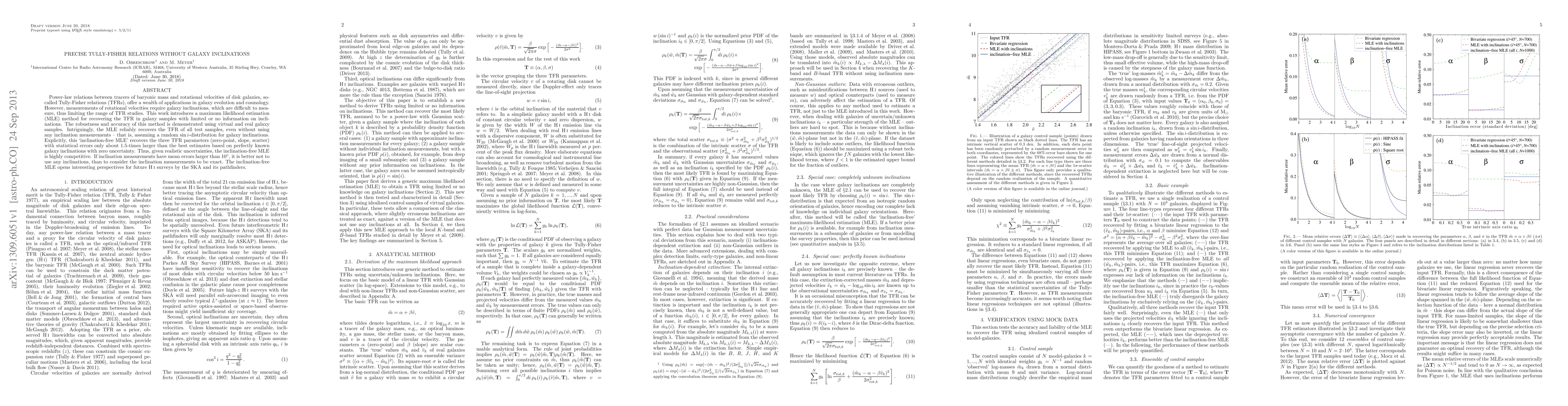 Power-law relations between tracers of baryonic mass and rotational velocities of disk galaxies, so-called Tully-Fisher relations (TFRs), offer a wealth of applications in galaxy evolution and cosmology. However, measurements of rotational velocities require galaxy inclinations, which are difficult to measure, thus limiting the range of TFR studies. This work introduces a maximum likelihood estimation (MLE) method for recovering the TFR in galaxy samples with limited or no information on inclinations. The robustness and accuracy of this method is demonstrated using virtual and real galaxy samples. Intriguingly, the MLE reliably recovers the TFR of all test samples, even without using any inclination measurements - that is, assuming a sin(i)-distribution for galaxy inclinations. Explicitly, this 'inclination-free MLE' recovers the three TFR parameters (zero-point, slope, scatter) with statistical errors only about 1.5-times larger than the best estimates based on perfectly known galaxy inclinations with zero uncertainty. Thus, given realistic uncertainties, the inclination-free MLE is highly competitive. If inclination measurements have mean errors larger than 10 degrees, it is better not to use any inclinations, than to consider the inclination measurements to be exact. The inclination-free MLE opens interesting perspectives for future HI surveys by the SKA and its pathfinders.