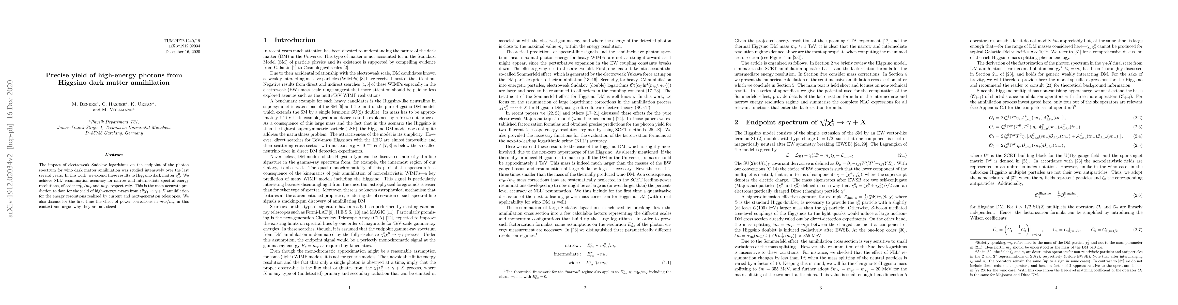The impact of electroweak Sudakov logarithms on the endpoint of the photon spectrum for wino dark matter annihilation was studied intensively over the last several years. In this work, we extend these results to Higgsino dark matter $\chi_1^0$. We achieve NLL' resummation accuracy for narrow and intermediate spectral energy resolutions, of order $m_W^2 / m_\chi$ and $m_W$, respectively. This is the most accurate prediction to date for the yield of high-energy $\gamma$-rays from $\chi_1^0 \chi_1^0 \to \gamma + X$ annihilation for the energy resolutions realized by current and next-generation telescopes. We also discuss for the first time the effect of power corrections in $m_W/m_\chi$ in this context and argue why they are not sizeable.
