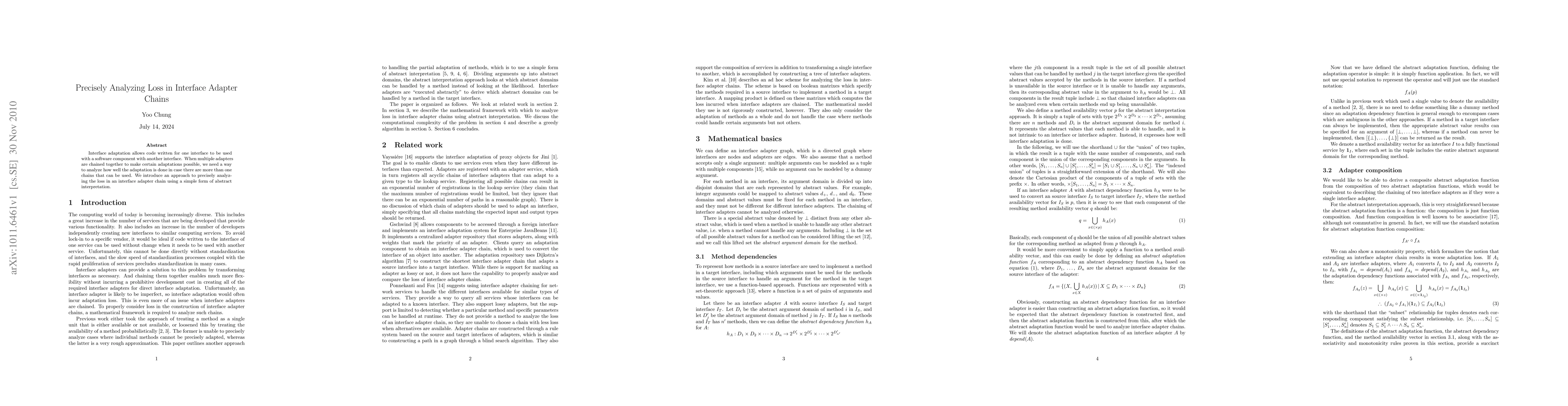 Interface adaptation allows code written for one interface to be used with a software component with another interface. When multiple adapters are chained together to make certain adaptations possible, we need a way to analyze how well the adaptation is done in case there are more than one chains that can be used. We introduce an approach to precisely analyzing the loss in an interface adapter chain using a simple form of abstract interpretation.