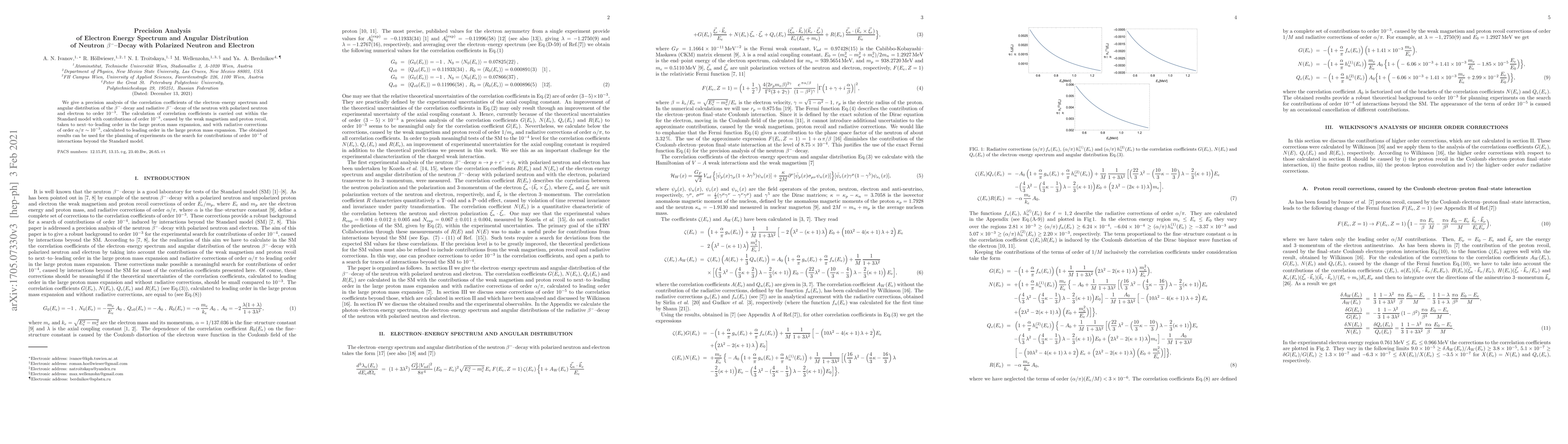 This paper provides a high-precision analysis of neutron beta decay, focusing on the electron energy spectrum and angular distribution with polarized particles, calculated to order 10^(-3). The study incorporates weak magnetism and proton recoil effects, aiming to guide future experiments searching for beyond-Standard-Model interactions at the order of 10^(-4).
