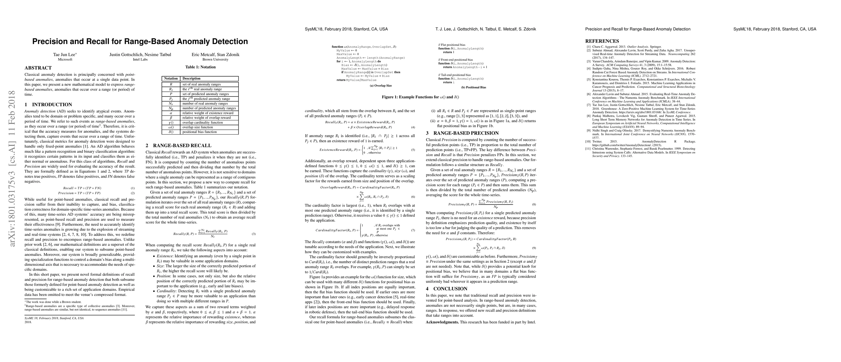 This paper introduces a new model for range-based anomaly detection, allowing for the identification of anomalies that occur over time periods rather than just at individual data points.