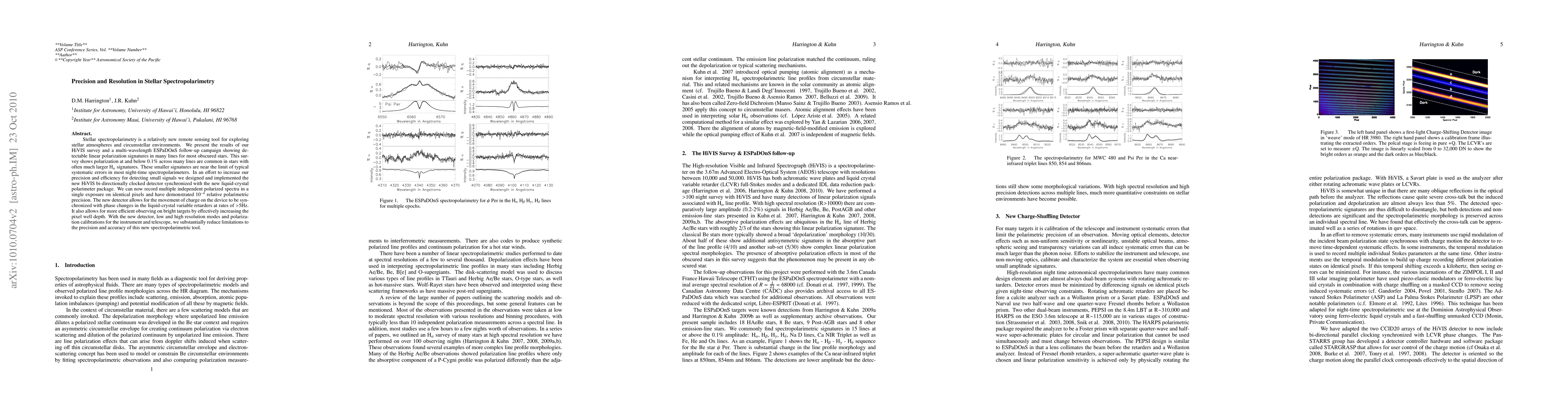Stellar spectropolarimetry is a relatively new remote sensing tool for exploring stellar atmospheres and circumstellar environments. We present the results of our HiVIS survey and a multi-wavelength ESPaDOnS follow-up campaign showing detectable linear polarization signatures in many lines for most obscured stars. This survey shows polarization at and below 0.1% across many lines are common in stars with often much larger H-alpha signatures. These smaller signatures are near the limit of typical systematic errors in most night-time spectropolarimeters. In an effort to increase our precision and efficiency for detecting small signals we designed and implemented the new HiVIS bi-directionally clocked detector synchronized with the new liquid-crystal polarimeter package. We can now record multiple independent polarized spectra in a single exposure on identical pixels and have demonstrated 10^-4 relative polarimetric precision. The new detector allows for the movement of charge on the device to be synchronized with phase changes in the liquid-crystal variable retarders at rates of >5Hz. It also allows for more efficient observing on bright targets by effectively increasing the pixel well depth. With the new detector, low and high resolution modes and polarization calibrations for the instrument and telescope, we substantially reduce limitations to the precision and accuracy of this new spectropolarimetric tool.