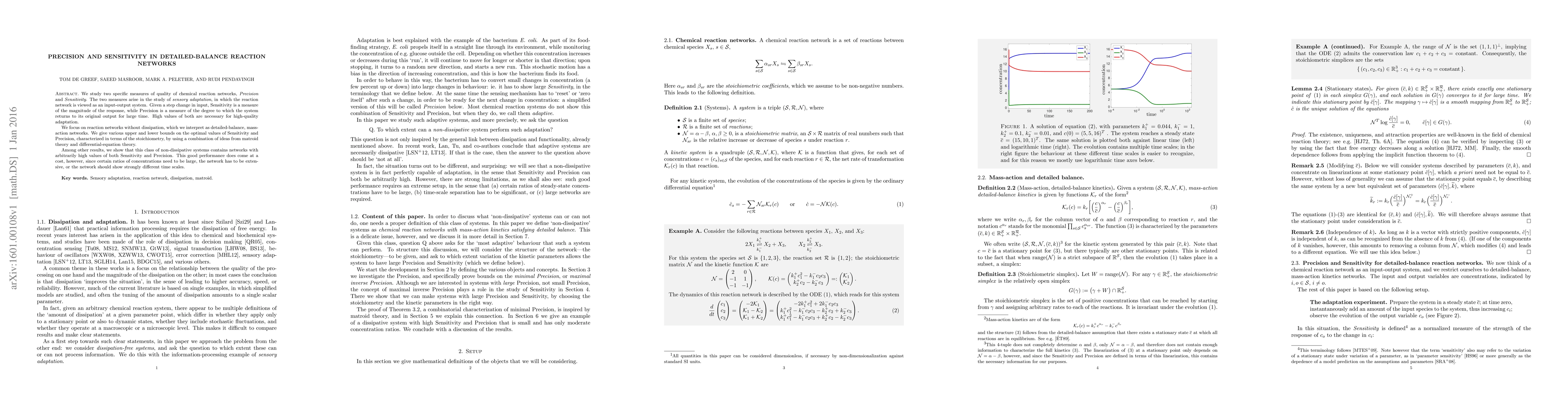 This paper studies reaction networks for sensory adaptation, finding that some detailed-balance networks can achieve high Sensitivity and Precision, but at the cost of certain concentration ratios needing to be large.