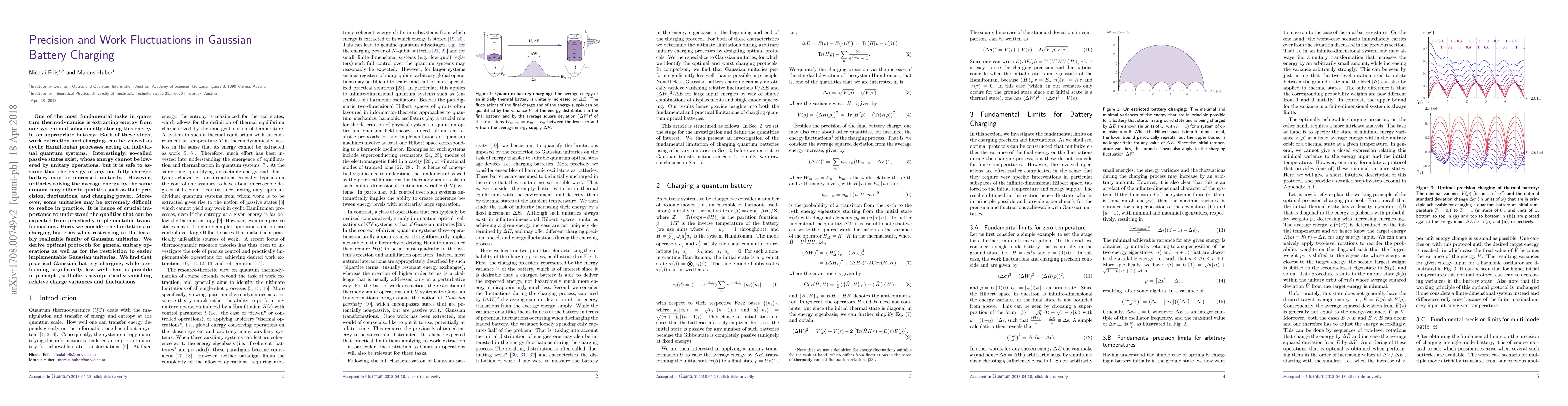 One of the most fundamental tasks in quantum thermodynamics is extracting energy from one system and subsequently storing this energy in an appropriate battery. Both of these steps, work extraction and charging, can be viewed as cyclic Hamiltonian processes acting on individual quantum systems. Interestingly, so-called passive states exist, whose energy cannot be lowered by unitary operations, but it is safe to assume that the energy of any not fully charged battery may be increased unitarily. However, unitaries raising the average energy by the same amount may differ in qualities such as their precision, fluctuations, and charging power. Moreover, some unitaries may be extremely difficult to realize in practice. It is hence of crucial importance to understand the qualities that can be expected from practically implementable transformations. Here, we consider the limitations on charging batteries when restricting to the feasibly realizable family of Gaussian unitaries. We derive optimal protocols for general unitary operations as well as for the restriction to easier implementable Gaussian unitaries. We find that practical Gaussian battery charging, while performing significantly less well than is possible in principle, still offers asymptotically vanishing relative charge variances and fluctuations.
