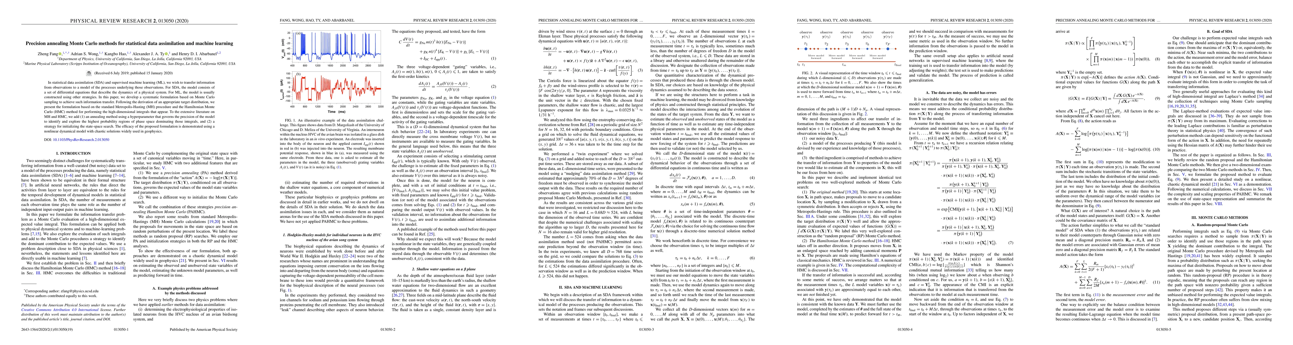 Researchers develop a new method to transfer information from observations to models in statistical data assimilation and machine learning using precision annealing Monte Carlo methods. This approach combines the Metropolis-Hasting and Hamiltonian Monte Carlo methods with an annealing technique to improve model performance.