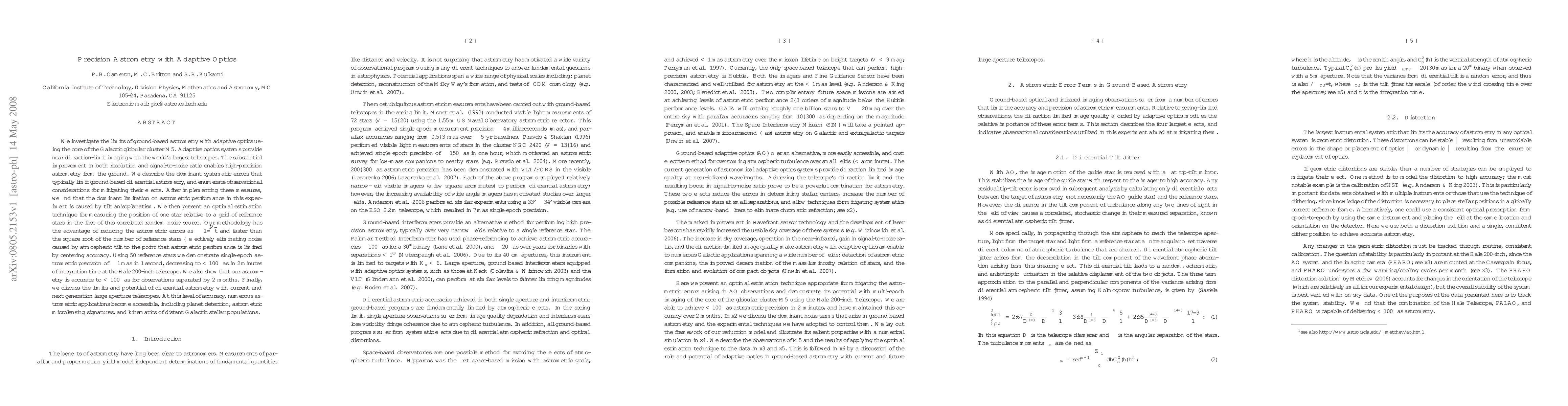 This paper explores the precision of ground-based astrometry enhanced by adaptive optics, demonstrating the use of the Hale 200-inch telescope to achieve single-epoch astrometric precision of ~1 mas in 1 second. The authors propose an optimal estimation technique to mitigate systematic errors and show that astrometric performance is ultimately limited by centering accuracy, enabling applications like planet detection and stellar kinematics.