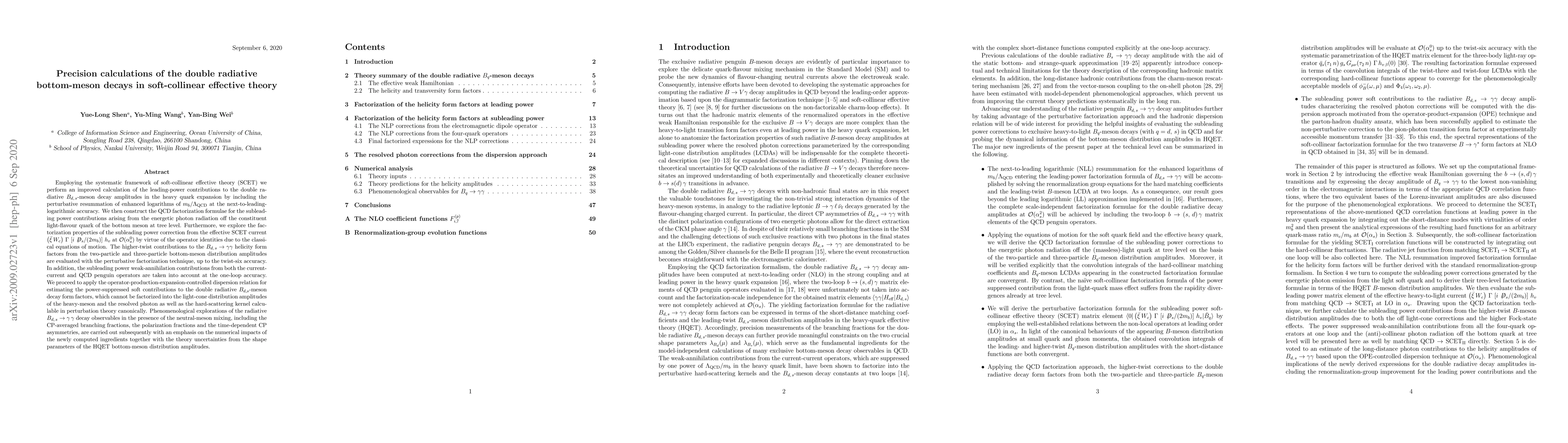 This paper employs soft-collinear effective theory (SCET) to calculate leading-power contributions to double radiative $B_{d, s}$-meson decay amplitudes, constructs QCD factorization formulae for subleading power contributions, and evaluates higher-twist contributions up to twist-six accuracy. The study also considers subleading power weak-annihilation contributions and applies dispersion relations to estimate power-suppressed soft contributions, followed by phenomenological explorations of decay observables.