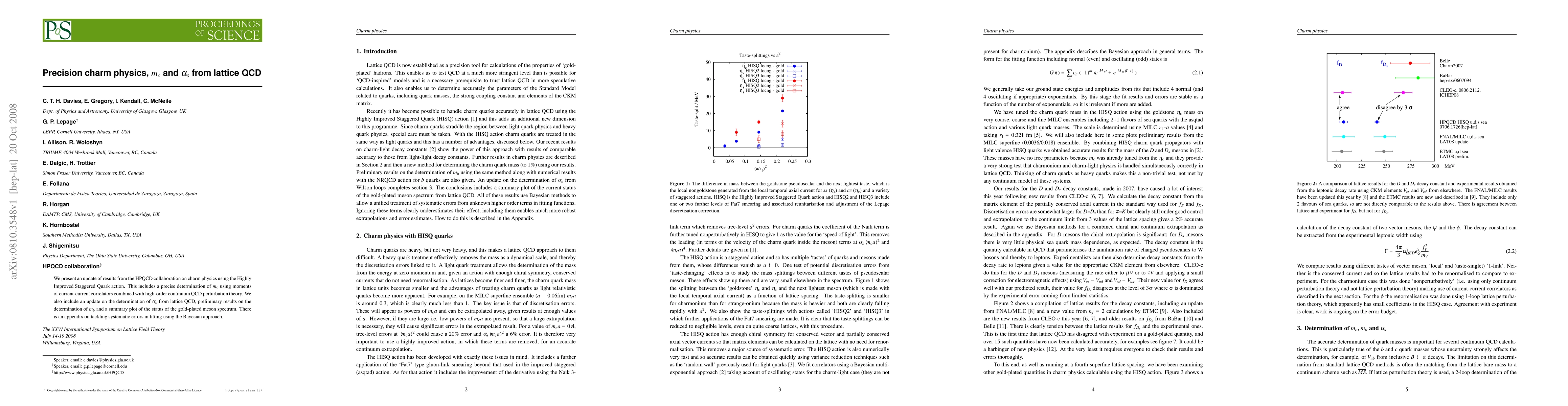 We present an update of results from the HPQCD collaboration on charm physics using the Highly Improved Staggered Quark action. This includes a precise determination of m_c using moments of current-current correlators combined with high-order continuum QCD perturbation theory. We also include an update on the determination of alpha_s from lattice QCD, preliminary results on the determination of m_b and a summary plot of the status of the gold-plated meson spectrum. There is an appendix on tackling systematic errors in fitting using the Bayesian approach.