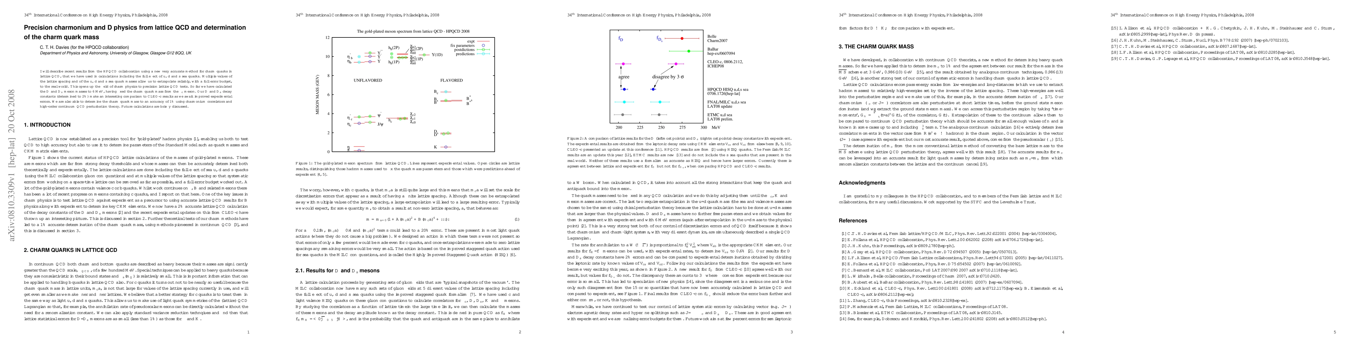This paper presents precise lattice QCD calculations from the HPQCD collaboration on charmonium and D meson physics, achieving the charm quark mass determination with 1% accuracy. The study uses advanced methods to account for sea quark effects and extrapolates reliably to real-world values, achieving D and D_s meson mass calculations with 6 MeV precision.