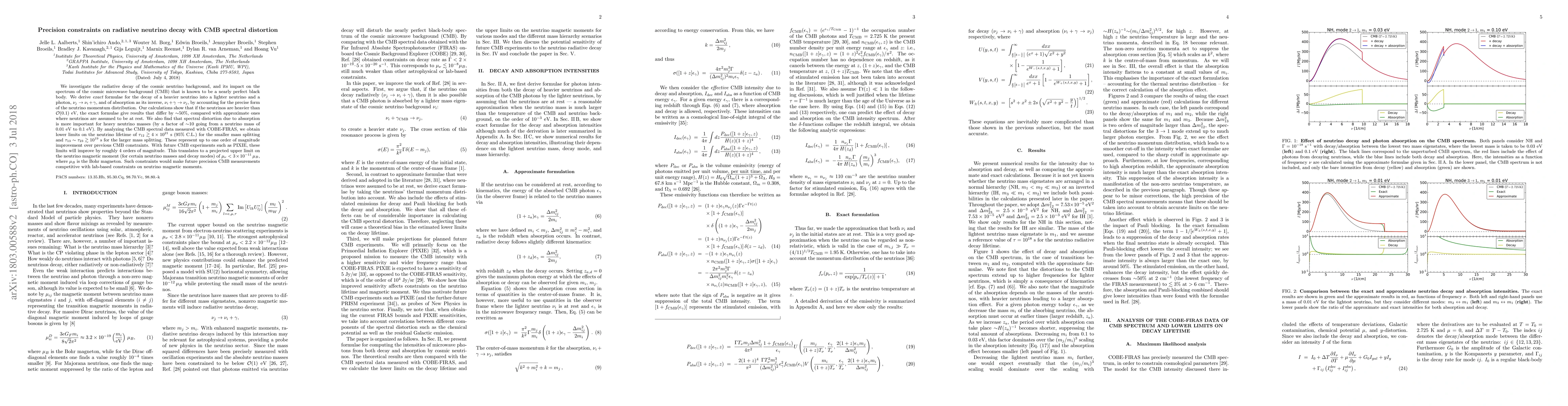 We investigate the radiative decay of the cosmic neutrino background, and its impact on the spectrum of the cosmic microwave background (CMB) that is known to be a nearly perfect black body. We derive exact formulae for the decay of a heavier neutrino into a lighter neutrino and a photon, $\nu_j \to \nu_i + \gamma$, and of absorption as its inverse, $\nu_i + \gamma \to \nu_j$, by accounting for the precise form of the neutrino momentum distribution. Our calculations show that if the neutrinos are heavier than $\mathcal O(0.1)$ eV, the exact formulae give results that differ by $\sim$50%, compared with approximate ones where neutrinos are assumed to be at rest. We also find that spectral distortion due to absorption is more important for heavy neutrino masses (by a factor of $\sim$10 going from a neutrino mass of 0.01 eV to 0.1 eV). By analyzing the CMB spectral data measured with COBE-FIRAS, we obtain lower limits on the neutrino lifetime of $\tau_{12} \gtrsim 4 \times 10^{21}$ s (95% C.L.) for the smaller mass splitting and $\tau_{13} \sim \tau_{23} \gtrsim 10^{19}$ s for the larger mass splitting. These represent up to one order of magnitude improvement over previous CMB constraints. With future CMB experiments such as PIXIE, these limits will improve by roughly 4 orders of magnitude. This translates to a projected upper limit on the neutrino magnetic moment (for certain neutrino masses and decay modes) of $\mu_\nu < 3 \times 10^{-11}\, \mu_B$, where $\mu_B$ is the Bohr magneton. Such constraints would make future precision CMB measurements competitive with lab-based constraints on neutrino magnetic moments.