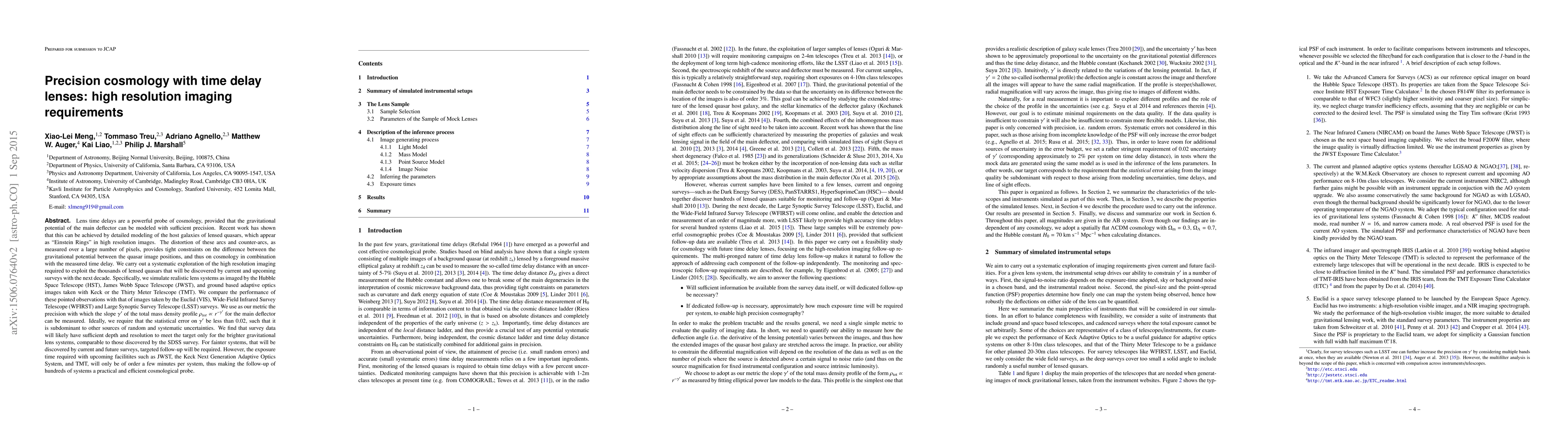 Lens time delays are a powerful probe of cosmology, provided that the gravitational potential of the main deflector can be modeled with sufficient precision. Recent work has shown that this can be achieved by detailed modeling of the host galaxies of lensed quasars, which appear as "Einstein Rings" in high resolution images. We carry out a systematic exploration of the high resolution imaging required to exploit the thousands of lensed quasars that will be discovered by current and upcoming surveys with the next decade. Specifically, we simulate realistic lens systems as imaged by the Hubble Space Telescope (HST), James Webb Space Telescope (JWST), and ground based adaptive optics images taken with Keck or the Thirty Meter Telescope (TMT). We compare the performance of these pointed observations with that of images taken by the Euclid (VIS), Wide-Field Infrared Survey Telescope (WFIRST) and Large Synoptic Survey Telescope (LSST) surveys. We use as our metric the precision with which the slope $\gamma'$ of the total mass density profile $\rho_{tot}\propto r^{-\gamma'}$ for the main deflector can be measured. Ideally, we require that the statistical error on $\gamma'$ be less than 0.02, such that it is subdominant to other sources of random and systematic uncertainties. We find that survey data will likely have sufficient depth and resolution to meet the target only for the brighter gravitational lens systems, comparable to those discovered by the SDSS survey. For fainter systems, that will be discovered by current and future surveys, targeted follow-up will be required. However, the exposure time required with upcoming facilitites such as JWST, the Keck Next Generation Adaptive Optics System, and TMT, will only be of order a few minutes per system, thus making the follow-up of hundreds of systems a practical and efficient cosmological probe.