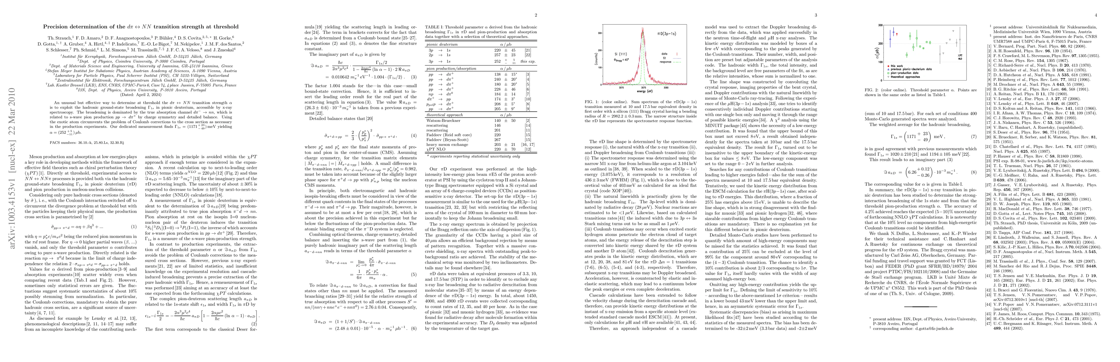 This research determines the dpi -> NN transition strength at threshold using pionic deuterium's hadronic ground-state broadening observed via x-ray spectroscopy, avoiding Coulomb corrections. The measurement yields a transition strength of (1171+23/-49) meV, corresponding to (252+5/-11) μb.