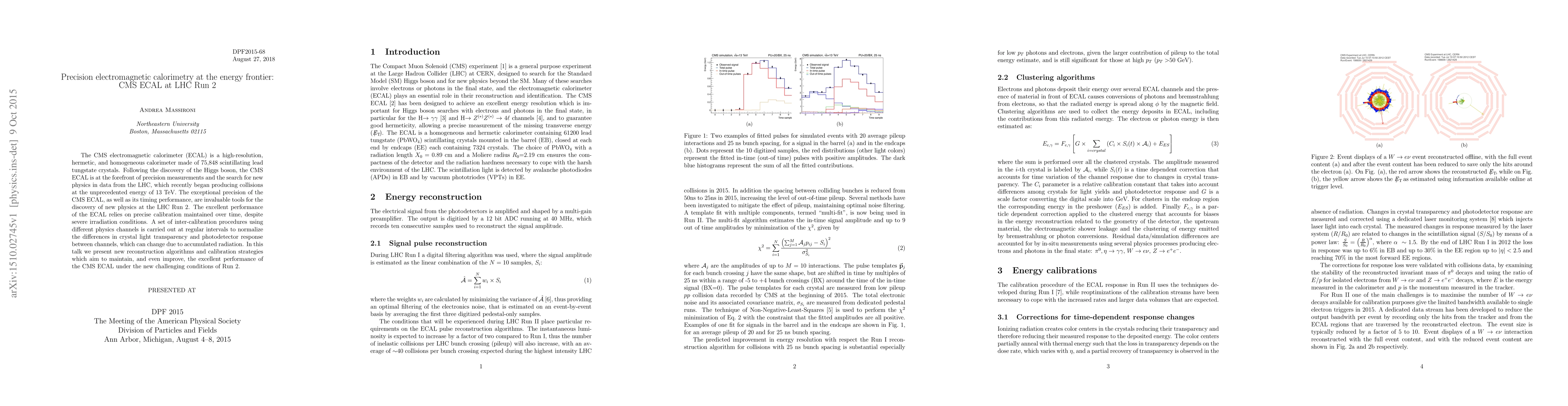 The CMS electromagnetic calorimeter (ECAL) is a high-resolution, hermetic, and homogeneous calorimeter made of 75,848 scintillating lead tungstate crystals. Following the discovery of the Higgs boson, the CMS ECAL is at the forefront of precision measurements and the search for new physics in data from the LHC, which recently began producing collisions at the unprecedented energy of 13 TeV. The exceptional precision of the CMS ECAL, as well as its timing performance, are invaluable tools for the discovery of new physics at the LHC Run 2. The excellent performance of the ECAL relies on precise calibration maintained over time, despite severe irradiation conditions. A set of inter-calibration procedures using different physics channels is carried out at regular intervals to normalize the differences in crystal light transparency and photodetector response between channels, which can change due to accumulated radiation. In this talk we present new reconstruction algorithms and calibration strategies which aim to maintain, and even improve, the excellent performance of the CMS ECAL under the new challenging conditions of Run 2.