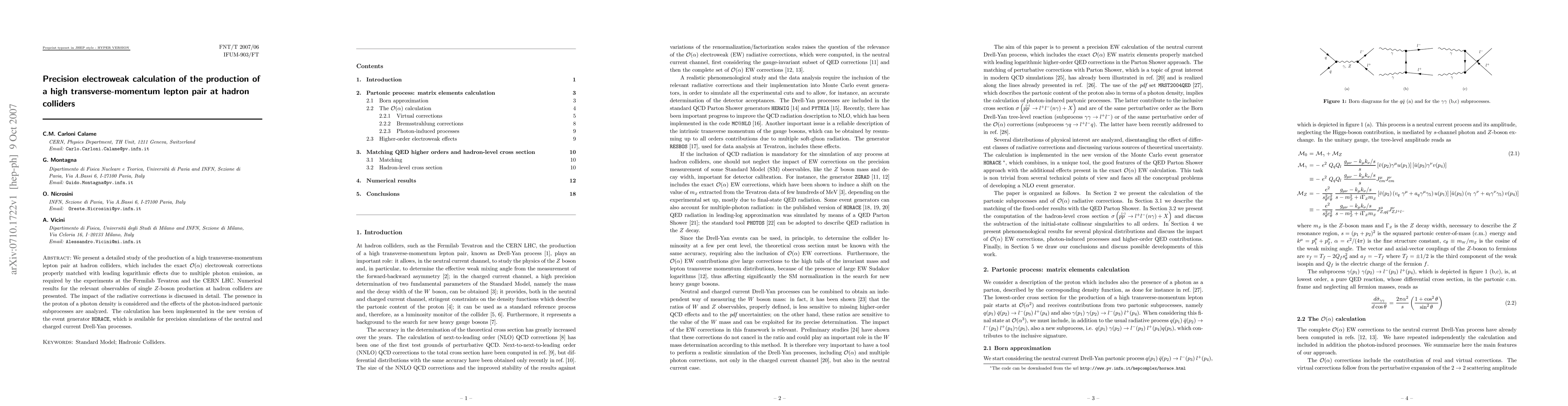 This paper provides a detailed study of high transverse-momentum lepton pair production at hadron colliders, incorporating precise O(alpha) electroweak corrections matched with leading logarithmic effects. The results are implemented in the HORACE event generator for simulations of neutral and charged current Drell-Yan processes.