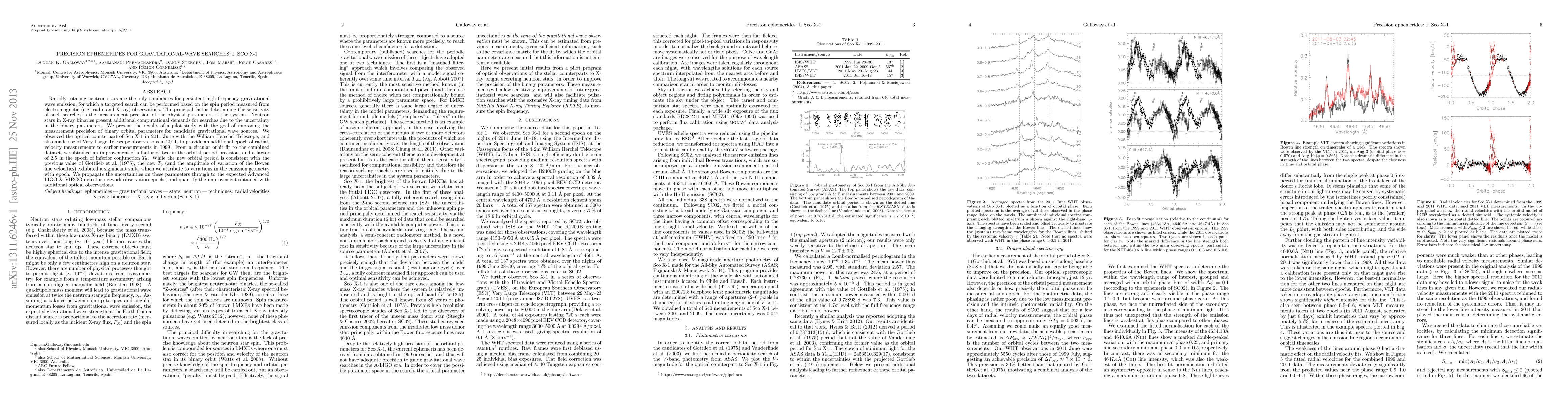 Rapidly-rotating neutron stars are the only candidates for persistent high-frequency gravitational wave emission, for which a targeted search can be performed based on the spin period measured from electromagnetic (e.g. radio and X-ray) observations. The principal factor determining the sensitivity of such searches is the measurement precision of the physical parameters of the system. Neutron stars in X-ray binaries present additional computational demands for searches due to the uncertainty in the binary parameters. We present the results of a pilot study with the goal of improving the measurement precision of binary orbital parameters for candidate gravitational wave sources. We observed the optical counterpart of Sco X-1 in 2011 June with the William Herschel Telescope, and also made use of Very Large Telescope observations in 2011, to provide an additional epoch of radial-velocity measurements to earlier measurements in 1999. From a circular orbit fit to the combined dataset, we obtained an improvement of a factor of two in the orbital period precision, and a factor of 2.5 in the epoch of inferior conjunction $T_0$. While the new orbital period is consistent with the previous value of Gottllieb et al. (1975), the new $T_0$ (and the amplitude of variation of the Bowen line velocities) exhibited a significant shift, which we attribute to variations in the emission geometry with epoch. We propagate the uncertainties on these parameters through to the expected Advanced LIGO & VIRGO detector network observation epochs, and quantify the improvement obtained with additional optical observations.