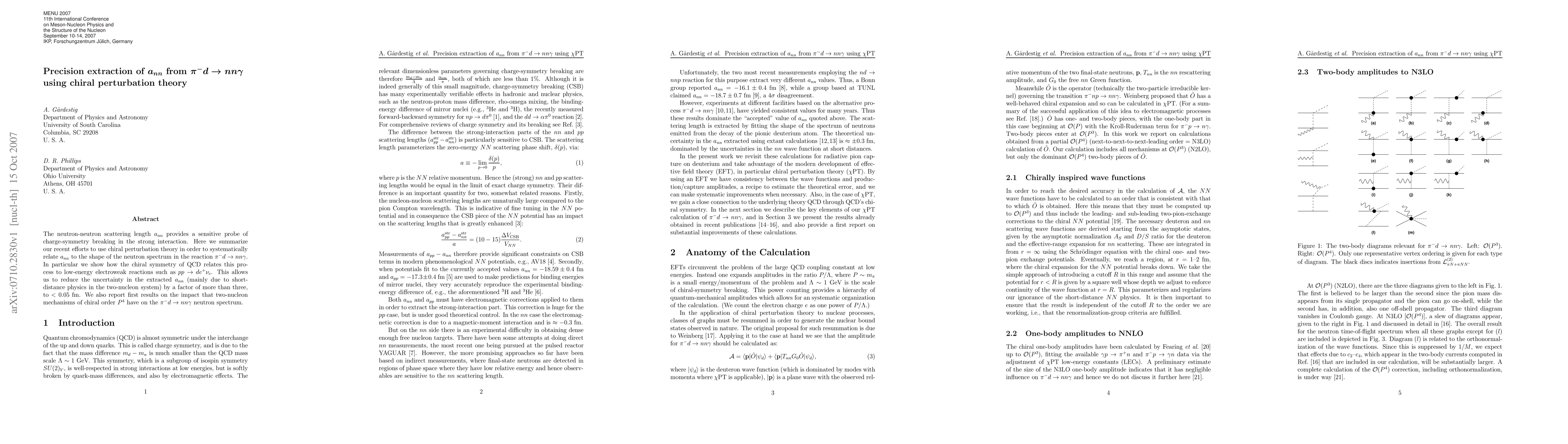 The neutron-neutron scattering length a_nn provides a sensitive probe of charge-symmetry breaking in the strong interaction. Here we summarize our recent efforts to use chiral perturbation theory in order to systematically relate a_nn to the shape of the neutron spectrum in the reaction pi- d --> n n gamma. In particular we show how the chiral symmetry of QCD relates this process to low-energy electroweak reactions such as p p --> d e+ nu_e. This allows us to reduce the uncertainty in the extracted a_nn (mainly due to short-distance physics in the two-nucleon system) by a factor of more than three, to <0.05 fm. We also report first results on the impact that two-nucleon mechanisms of chiral order P^4 have on the pi- d --> n n gamma neutron spectrum.