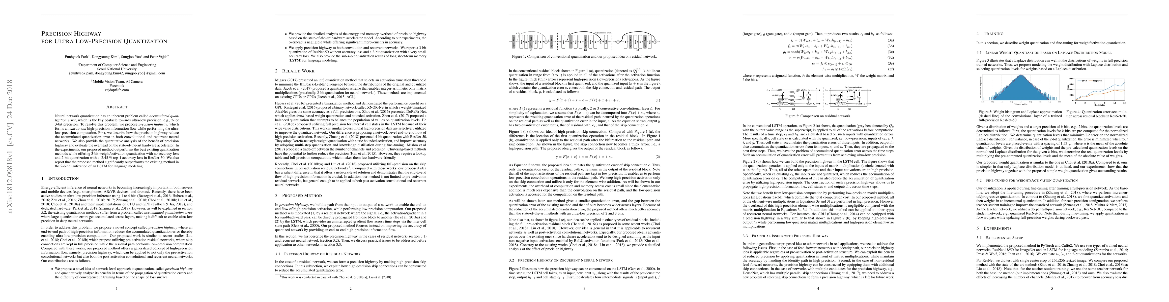 The paper proposes a precision highway technique to mitigate accumulated quantization error in ultra-low precision neural network quantization, enabling 3-bit quantization without accuracy loss and 2-bit quantization with minimal loss. The method outperforms existing methods in both convolutional and recurrent neural networks.
