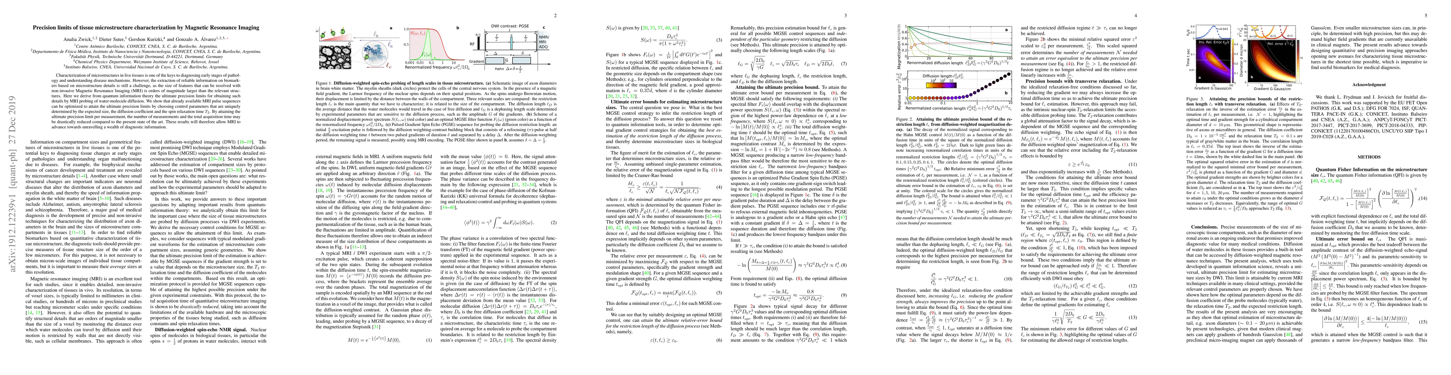 This paper derives quantum information theory-based precision limits for MRI in characterizing tissue microstructures, demonstrating that current MRI techniques can be optimized to reach these limits, thus reducing measurement times and advancing diagnostic capabilities.