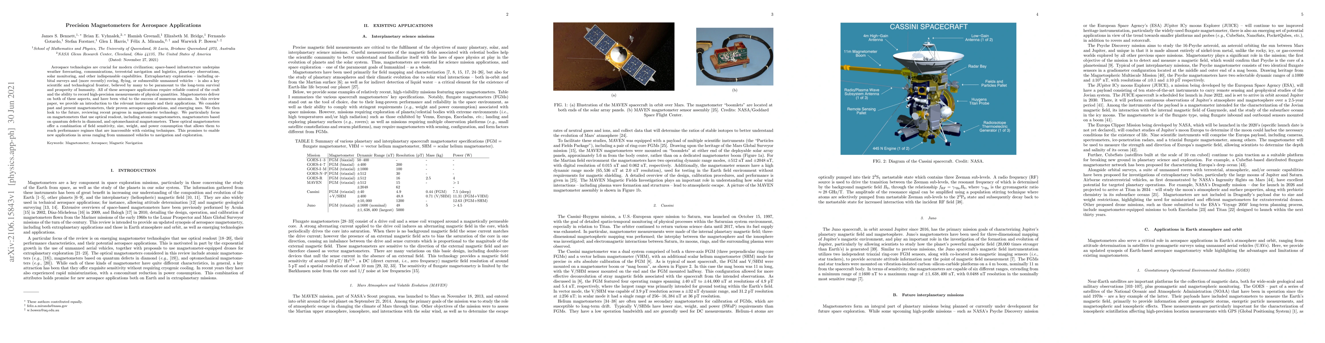This review paper explores the role of precision magnetometers in aerospace applications, emphasizing their use in navigation, exploration, and monitoring. It highlights advancements in optical magnetometer technology, including atomic magnetometers and quantum defect-based magnetometers, which offer superior performance and promise to enable new applications in unmanned vehicles and exploration.