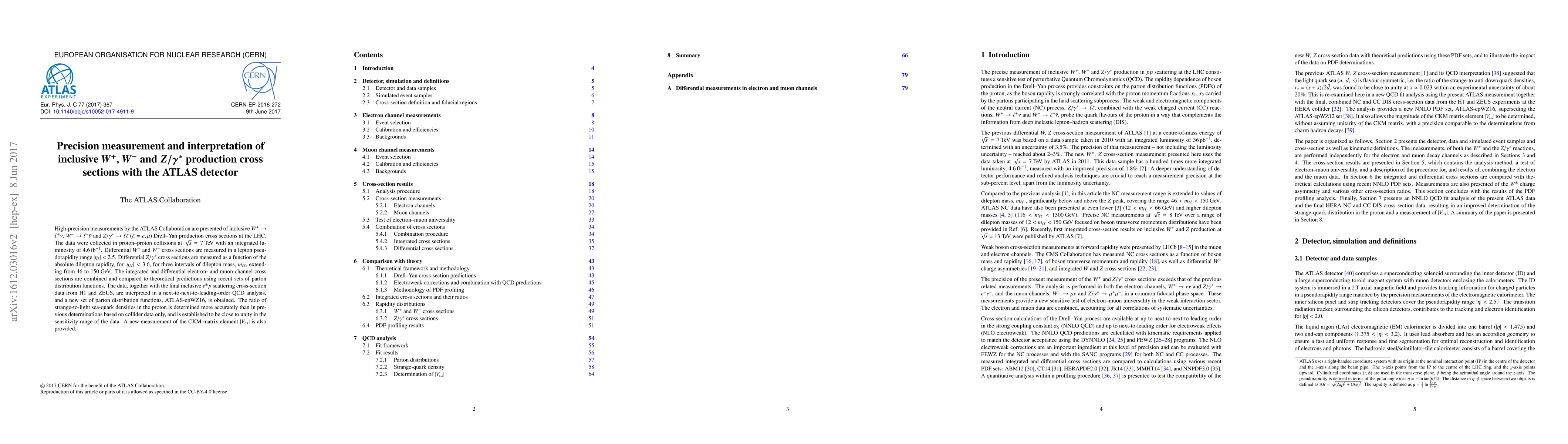 High-precision measurements by the ATLAS Collaboration are presented of inclusive $W^+\to\ell^+\nu$, $W^-\to\ell^-\bar{\nu}$ and $Z/\gamma^*\to\ell\ell$ ($\ell=e,\mu$) Drell-Yan production cross sections at the LHC. The data were collected in proton-proton collisions at $\sqrt{s} = 7$ TeV with an integrated luminosity of 4.6 fb$^{-1}$. Differential $W^+$ and $W^-$ cross sections are measured in a lepton pseudorapidity range $|\eta_{\ell}| = 2.5$. Differential $Z/\gamma^*$ cross sections are measured as a function of the absolute dilepton rapidity, for $|y_{\ell\ell}| < 3.6$, for three intervals of dilepton mass, $m_{\ell\ell}$, extending from 46 to 150 GeV. The integrated and differential electron- and muon-channel cross sections are combined and compared to theoretical predictions using recent sets of parton distribution functions. The data, together with the final inclusive $e^{\pm}p$ scattering cross-section data from H1 and ZEUS, are interpreted in a next-to-next-to-leading-order QCD analysis, and a new set of parton distribution functions, ATLAS-epWZ16, is obtained. The ratio of strange-to-light sea-quark densities in the proton is determined more accurately than in previous determinations based on collider data only, and is established to be close to unity in the sensitivity range of the data. A new measurement of the CKM matrix element $|V_{cs}|$ is also provided.