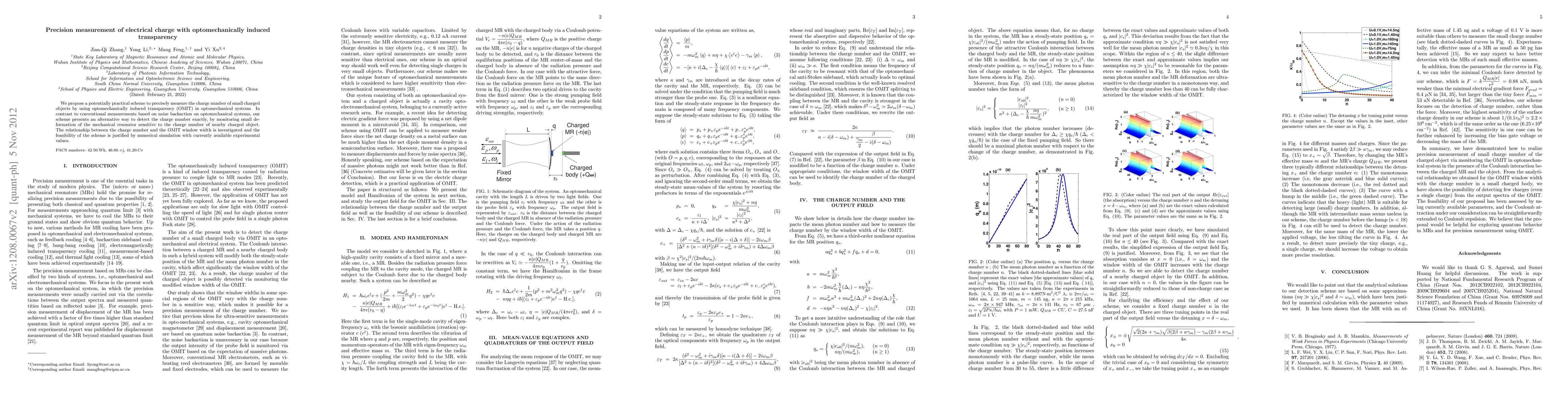 Researchers propose a new method to measure charged objects using optomechanical systems, leveraging the deformation of mechanical resonators sensitive to charge numbers, which can detect individual charges with high precision.