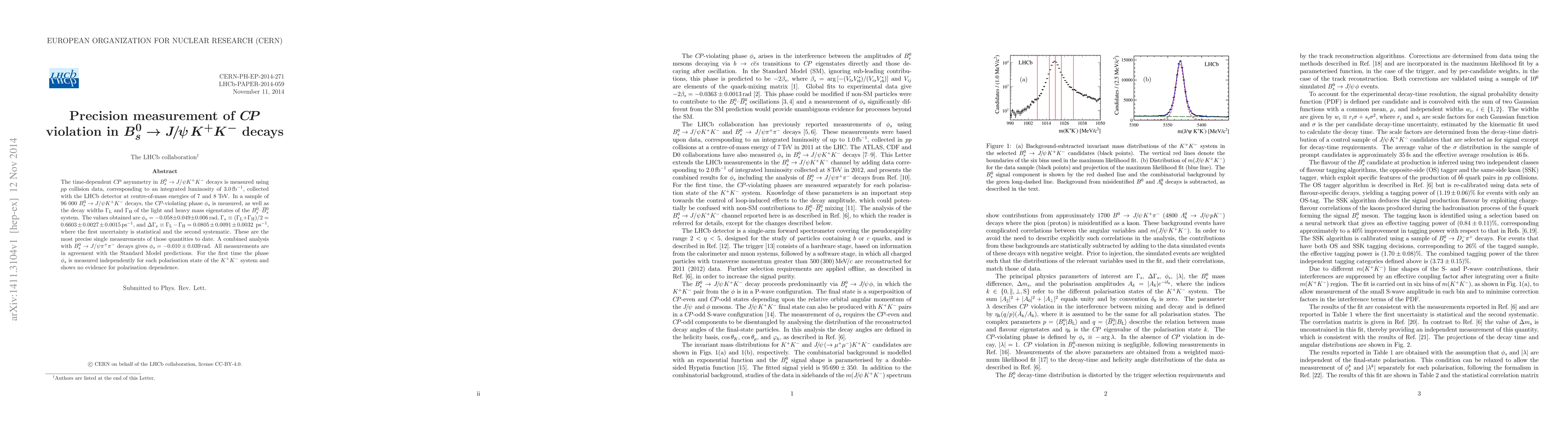 This study precisely measures the $CP$ violation in $B_s^0 \to J/\psi K^+K^-$ decays using LHCb data, yielding $\phi_s = -0.058 \pm 0.049 \pm 0.006$ rad, the most accurate single measurement to date. The results align with Standard Model predictions and provide independent measurements for each $K^+K^-$ polarization state, showing no polarization dependence.